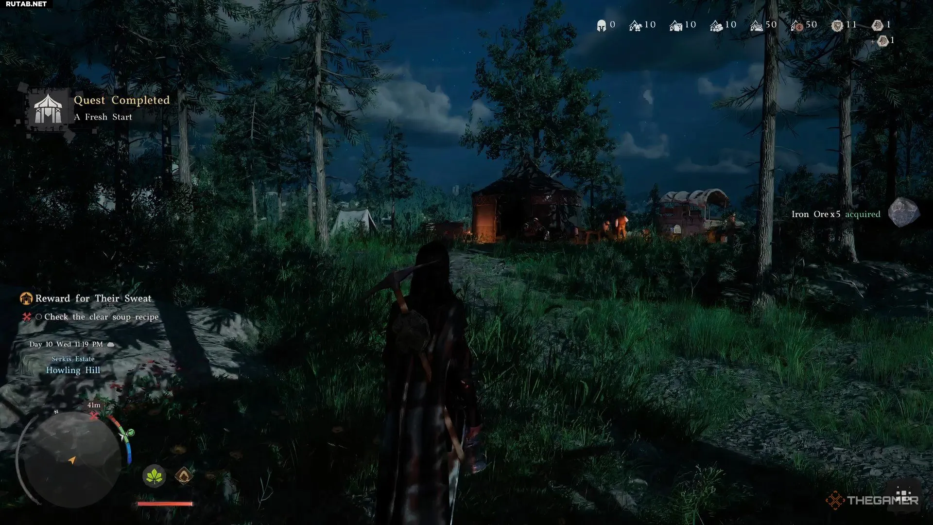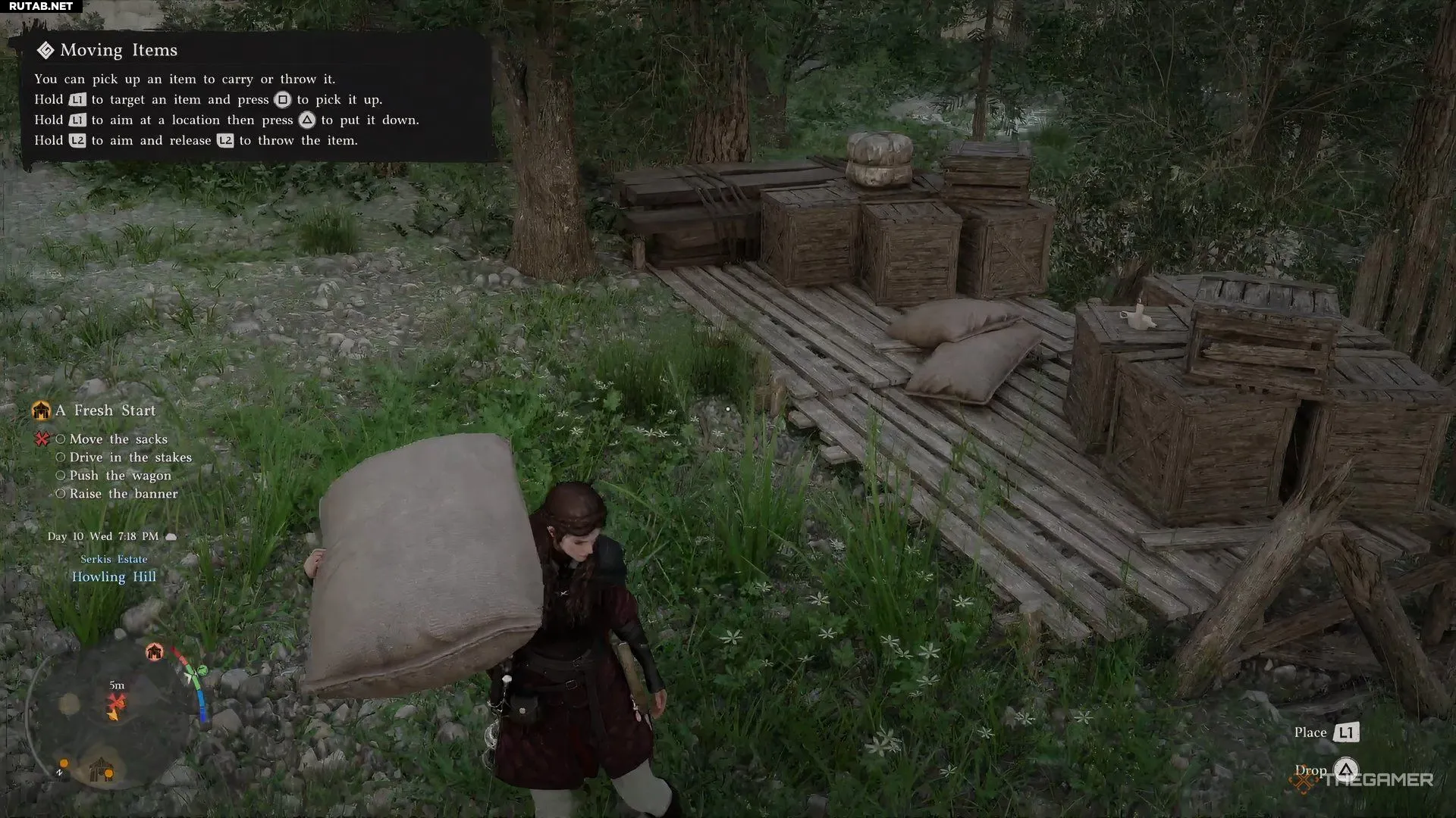 Это задание включает в себя перемещение мешков с припасами, толкание телеги, вбивание кольев в землю и поднятие знамени Серогривых. Звучит обыденно, но его выполнение официально основывает лагерь и открывает Дамиану как игрового персонажа.