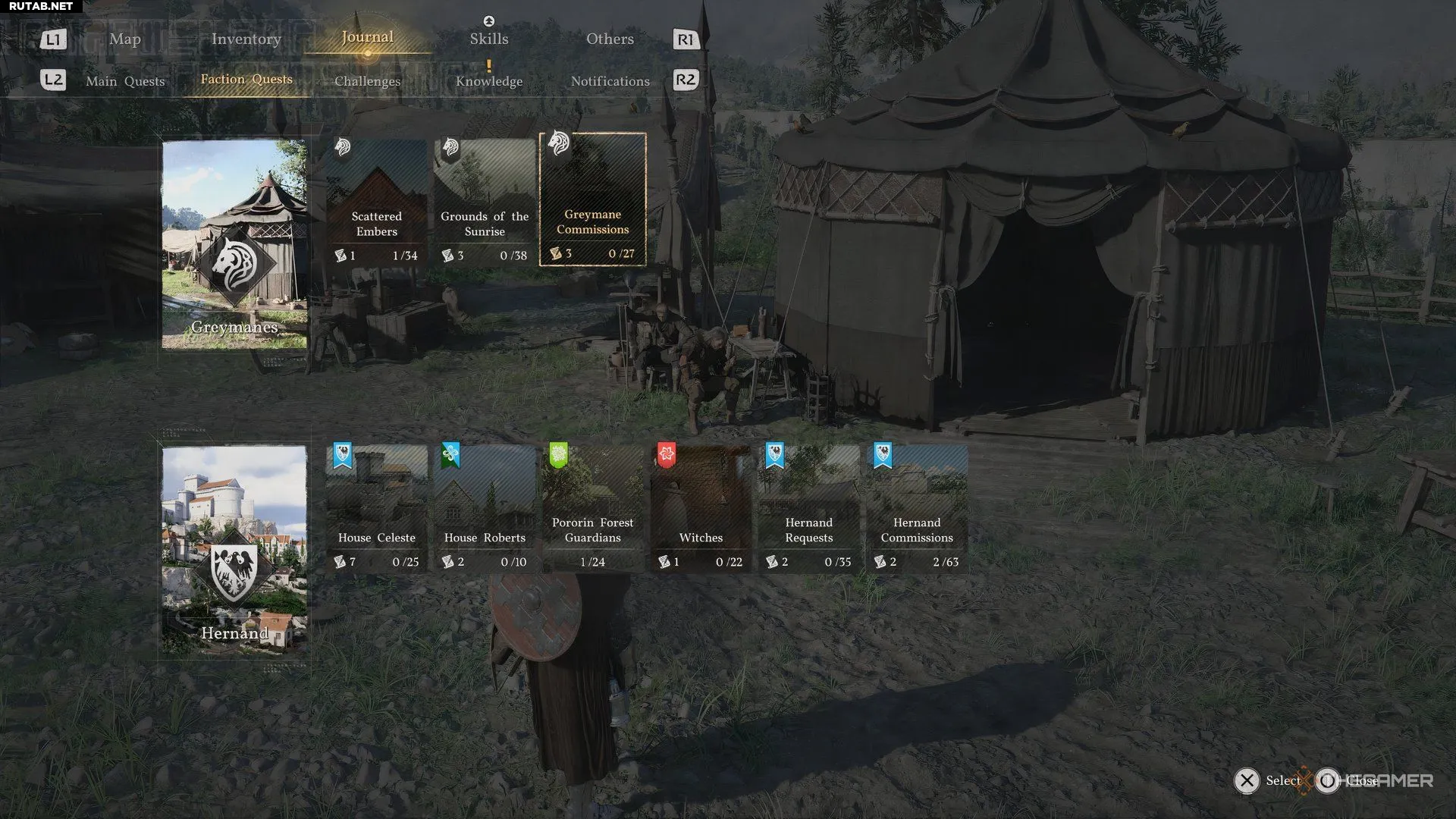 Чтобы открыть меню заданий, откройте карту, найдите значок лагеря Серогривых и нажмите «Осмотреть» (Y на Xbox, Triangle на PS5 или двойной щелчок на ПК). Затем перейдите в раздел «Список заданий», назначьте Наёмников и запустите выполнение. Система не самая интуитивная, но, разобравшись, вы будете пользоваться ей на автомате.