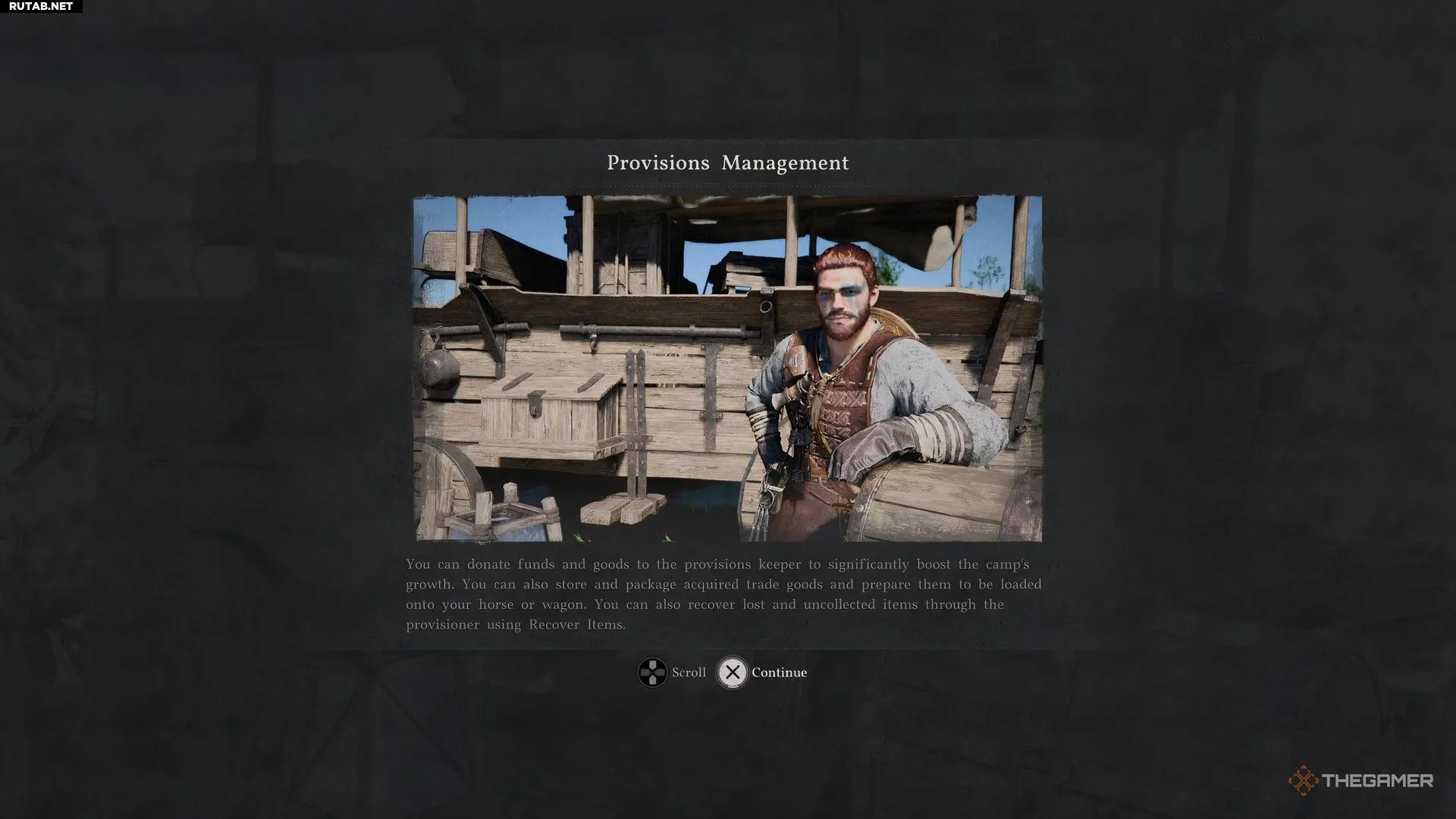 Карло управляет Провизией и находится рядом с сундуком припасов лагеря. Вы можете жертвовать ему ресурсы для пополнения общего запаса лагеря, а через него — получать доступ к системе Провизии, чтобы вручную вносить Материалы.