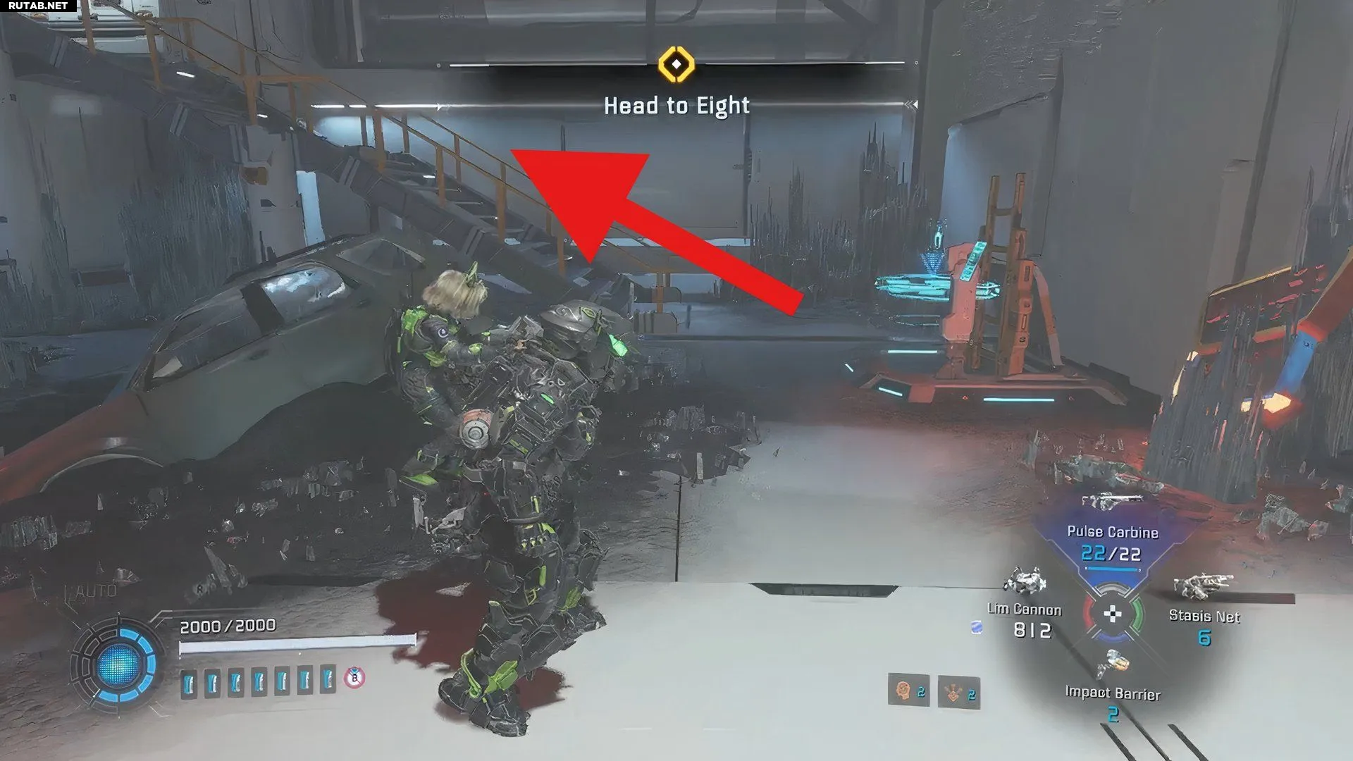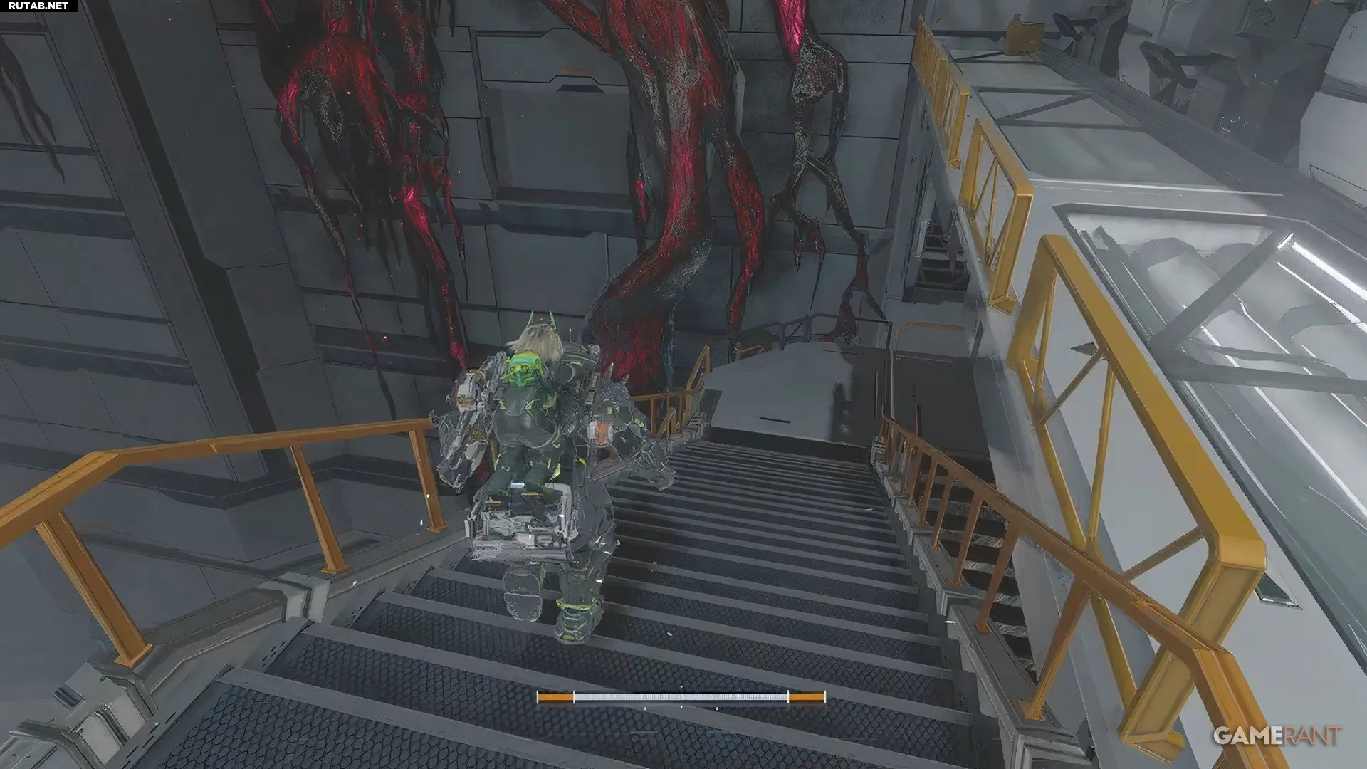- От терминала двигайтесь вперед и спуститесь вниз, чтобы сразиться с врагами.