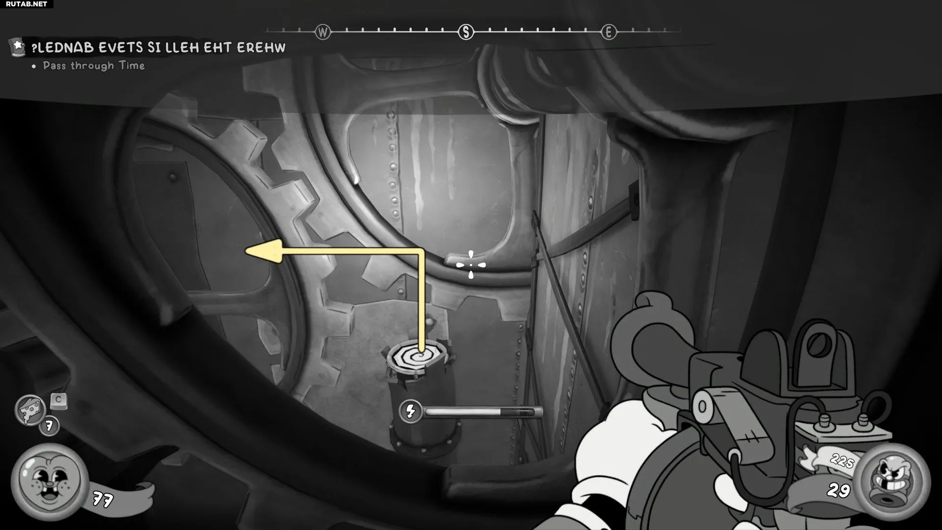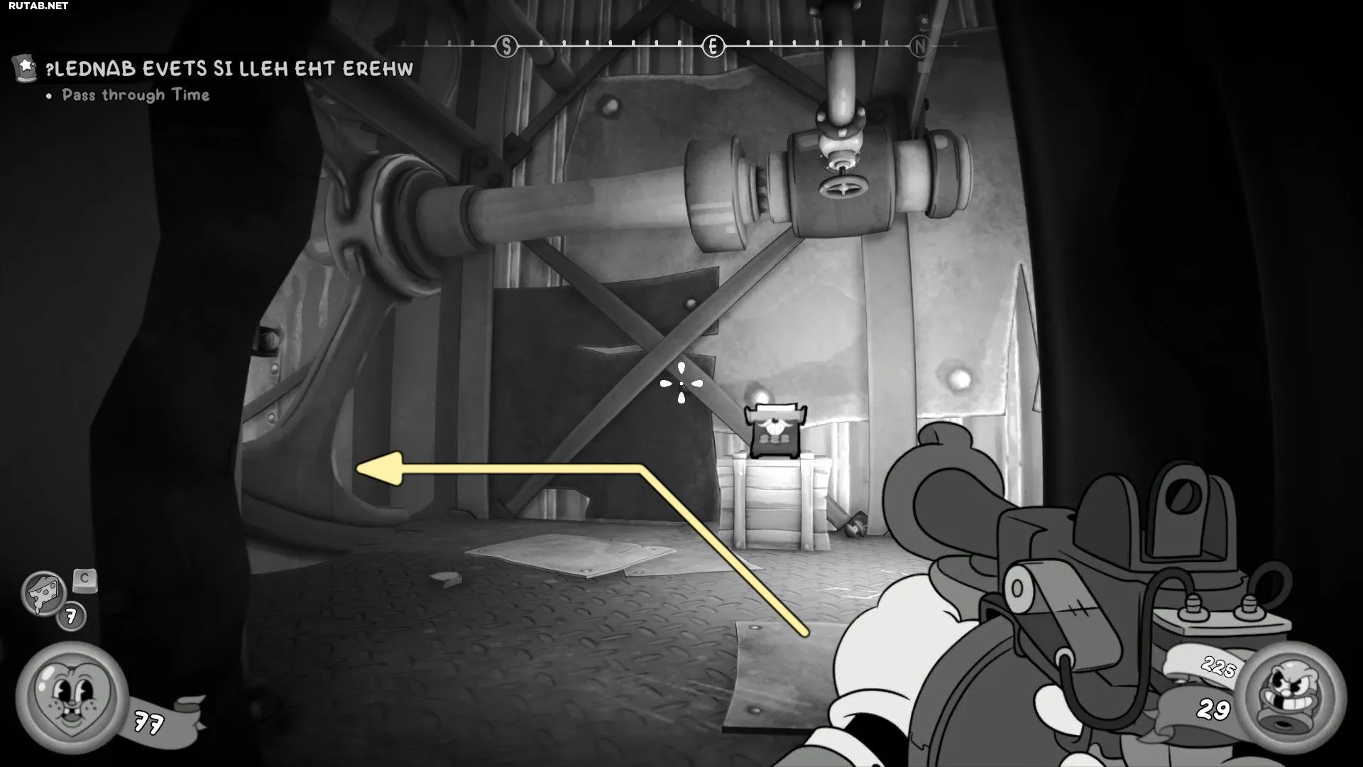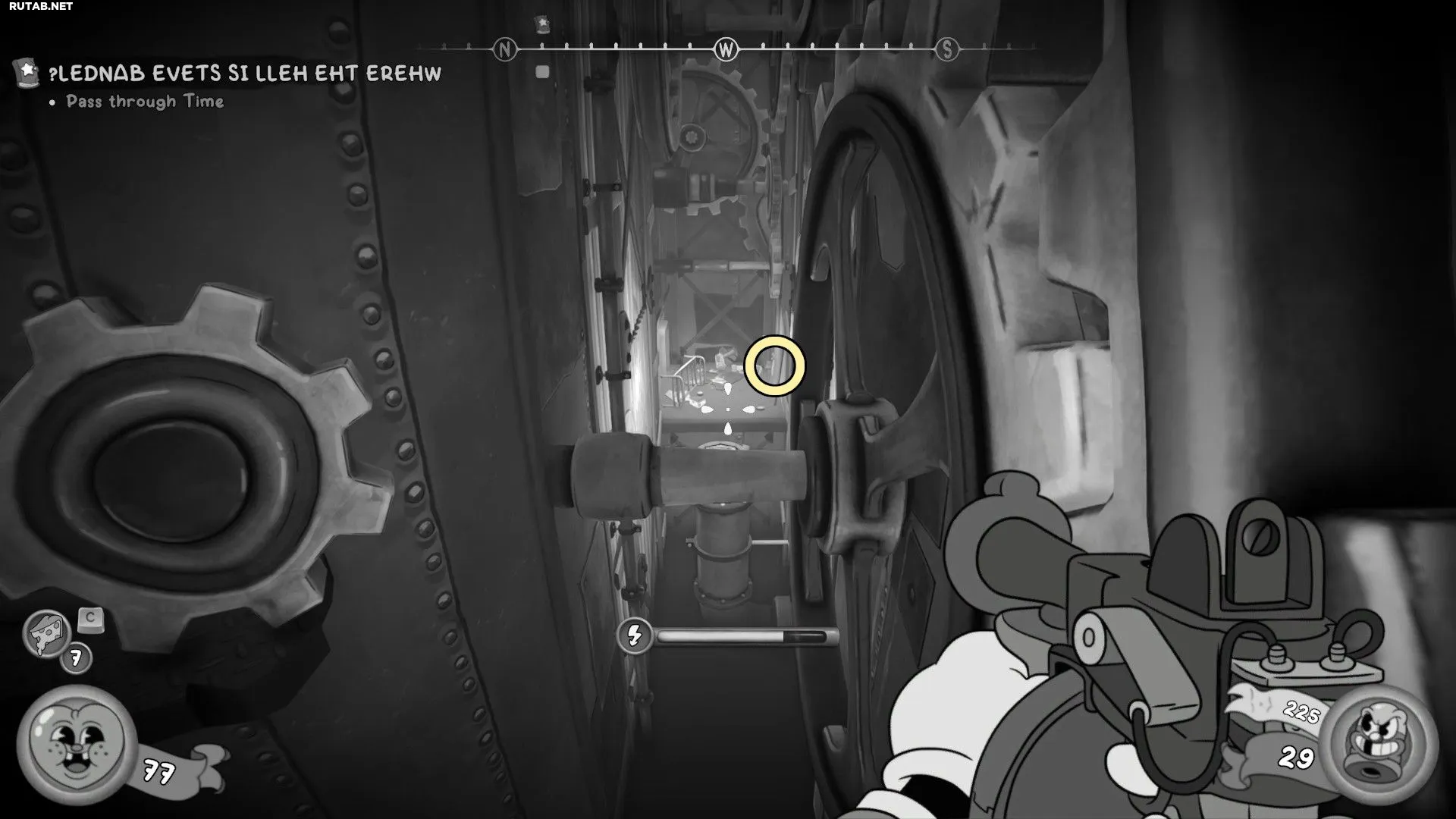 Пройдите через дверь в конце коридора, чтобы вернуться в Детективное агентство, и преодолейте следующий участок с подвесными платформами. Выстрелите в мишень рядом с линейкой, чтобы превратить её в мост. Вскоре вы окажетесь в комнате с большими шестернями на стене.