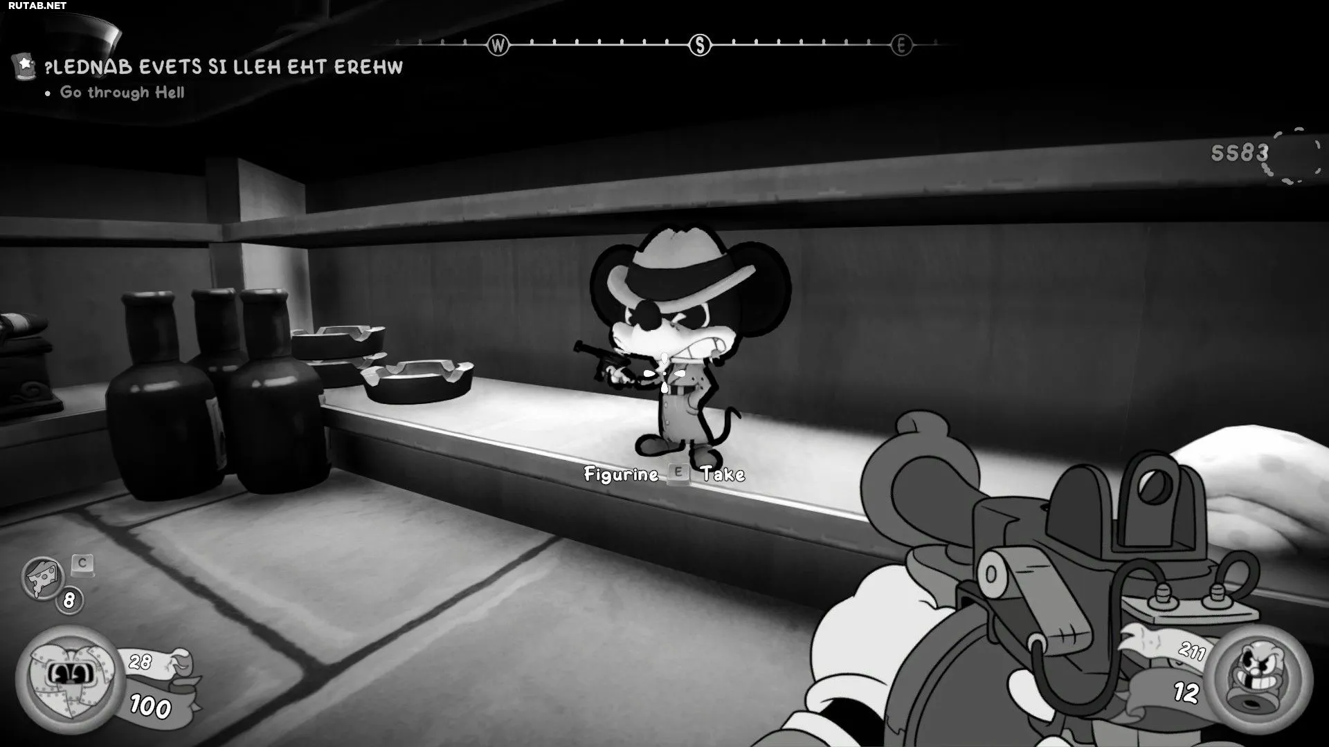 Загляните за стойку бара, чтобы найти Статуэтку. Заберите её и поднимитесь по лестнице.