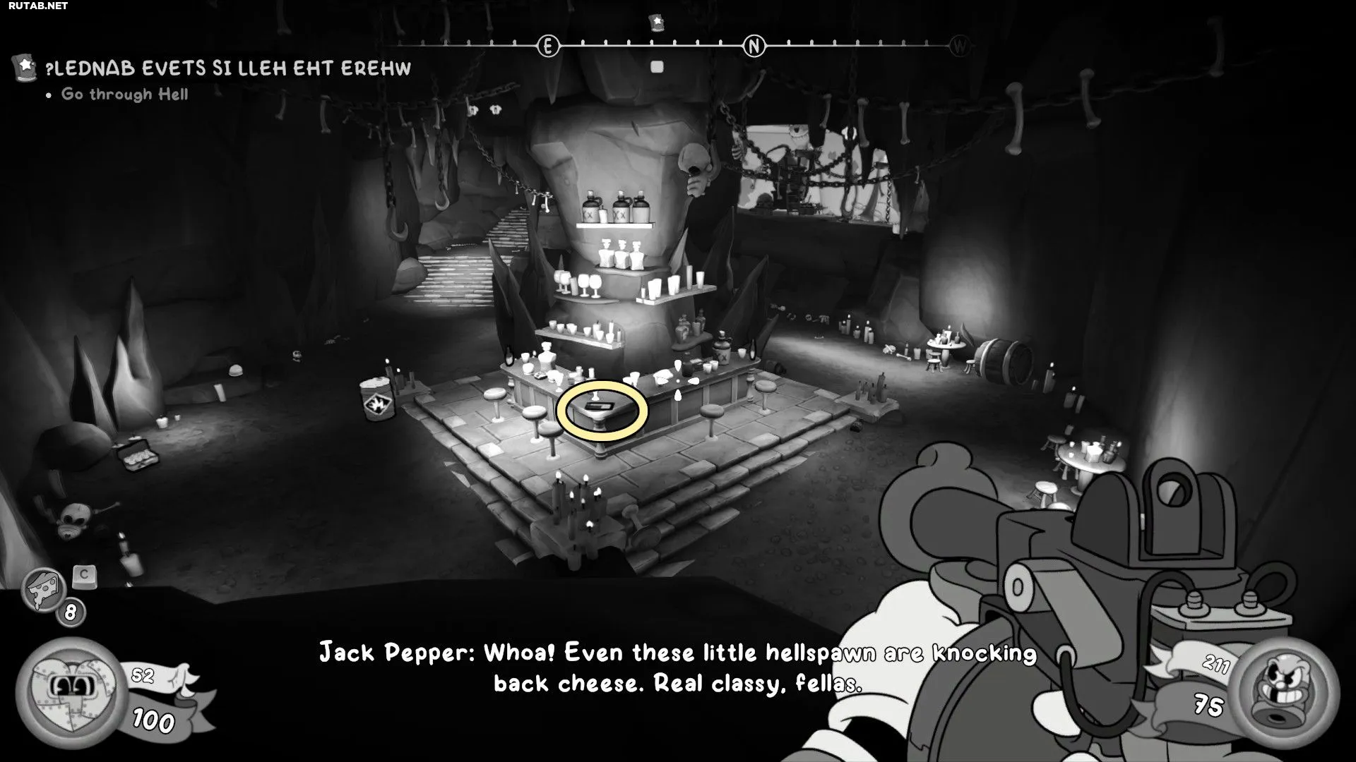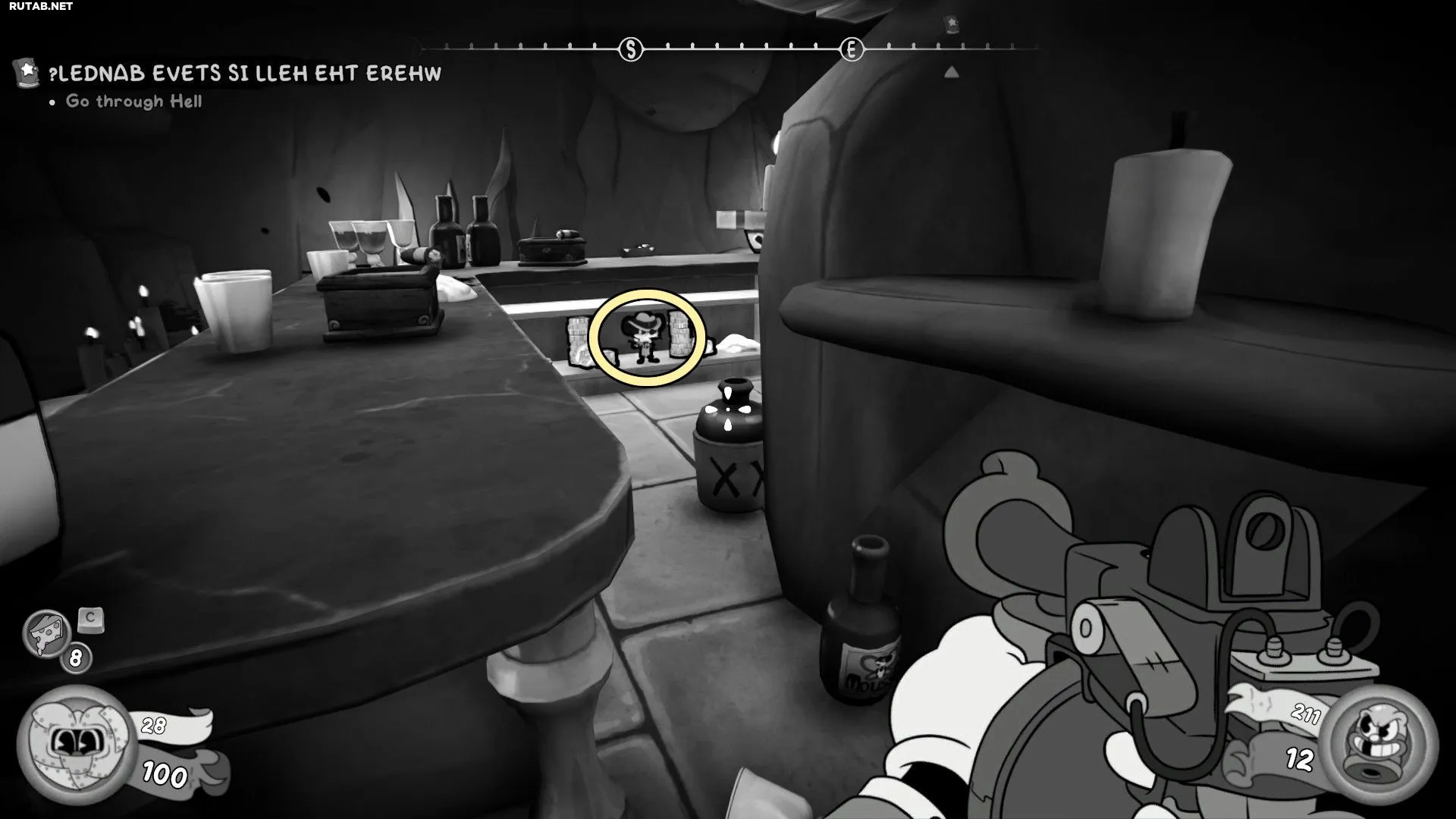 Поднявшись по лестнице из бара, воспользуйтесь лестницей слева, чтобы добраться до Адского Рожка. Задуйте в него и одолейте врагов.