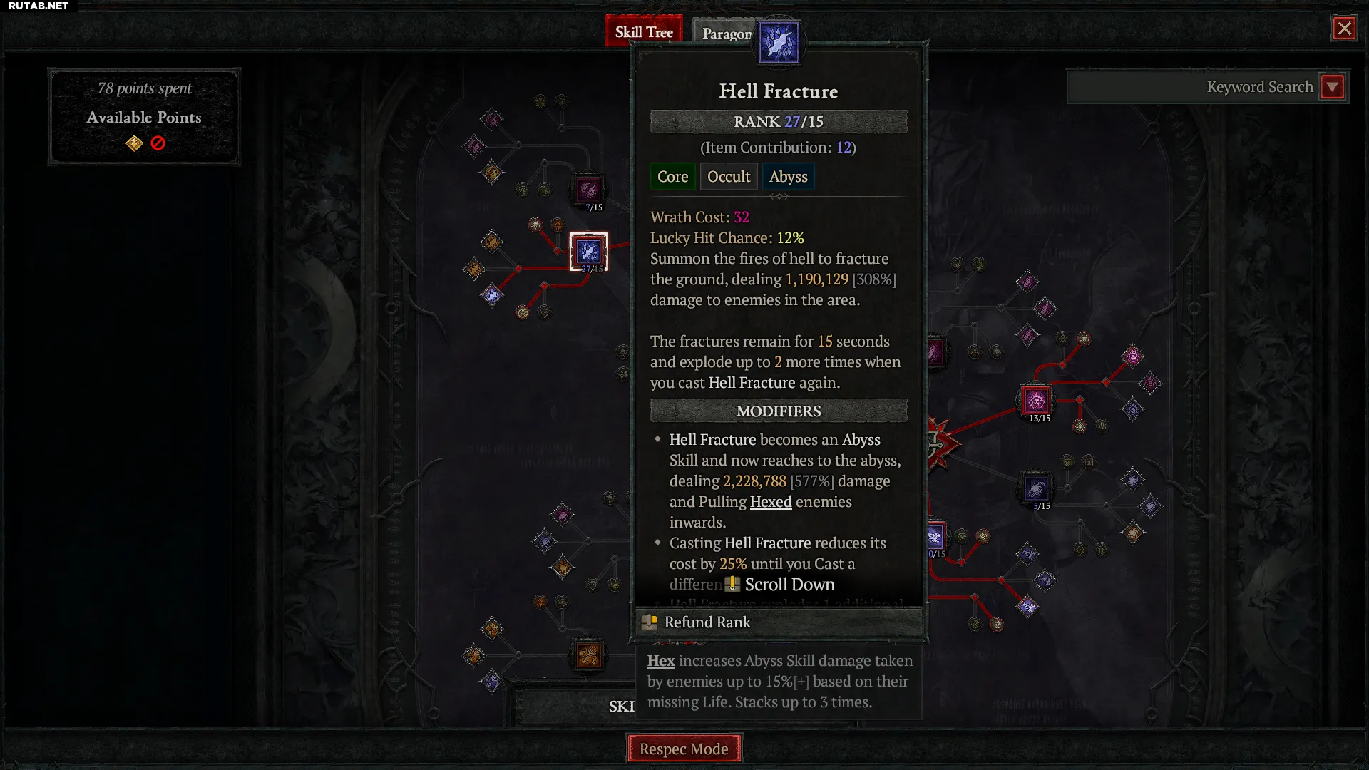 Старайтесь получить как можно больше рангов умения «Адский разлом» с помощью свойств предметов.