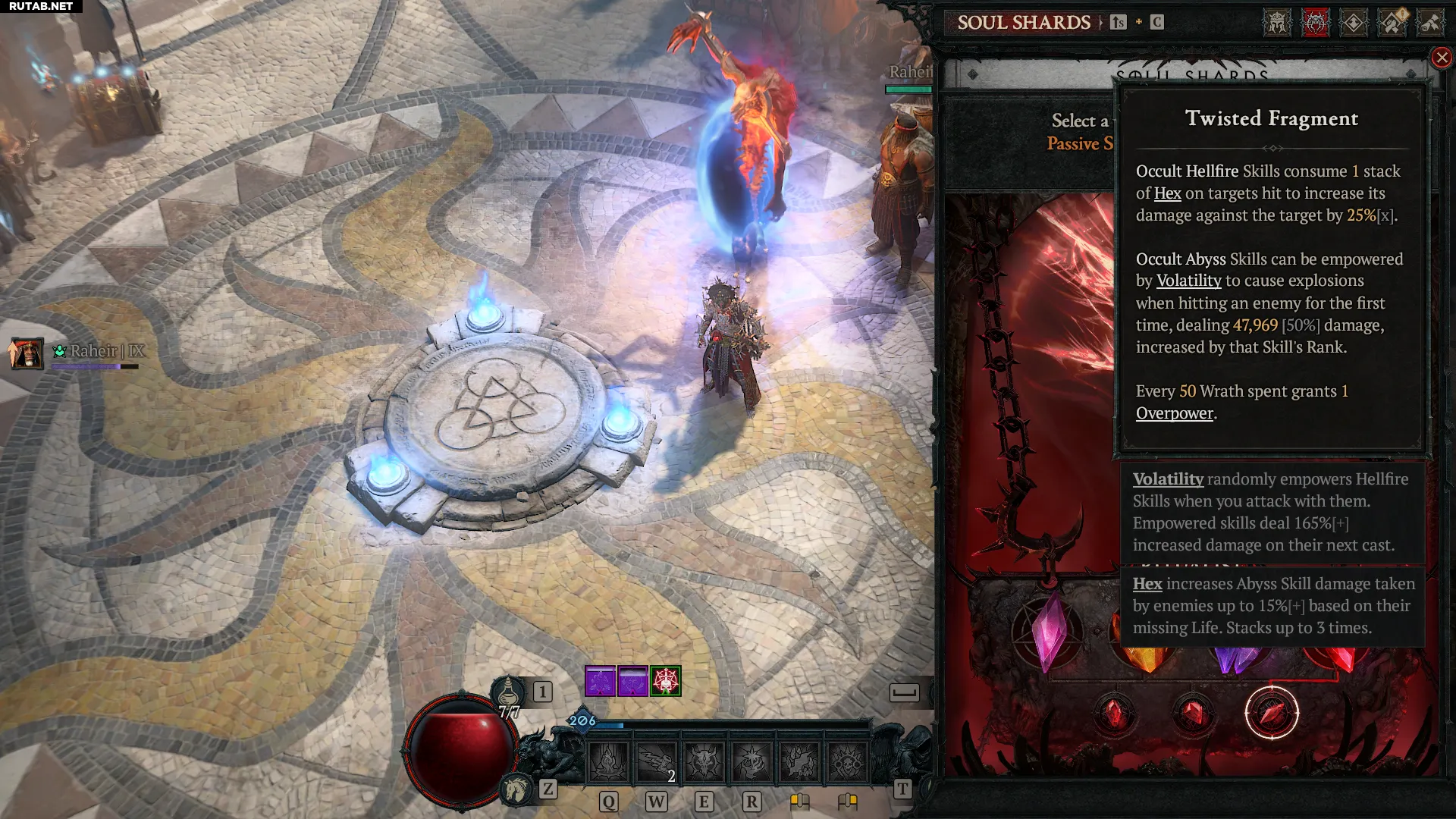 Осколок ритуалиста и «Искривлённый фрагмент» нужны для усиления урона «Адского разлома», позволяя ему получать выгоду от «Нестабильности», а также значительно улучшая бонусный урон от «Сокрушительного удара». Поскольку вы будете постоянно спамить умением Осколка души (в данном случае «Приказ Валлоха»), у вас почти всегда будет максимальное количество стаков «Сокрушительного удара». Превратив «Адский разлом» в умение «Оккультная бездна», эта комбинация осколка и фрагмента ещё больше увеличит урон способности за счёт синергии с пассивками «Нестабильности» и дополнительных взрывов.