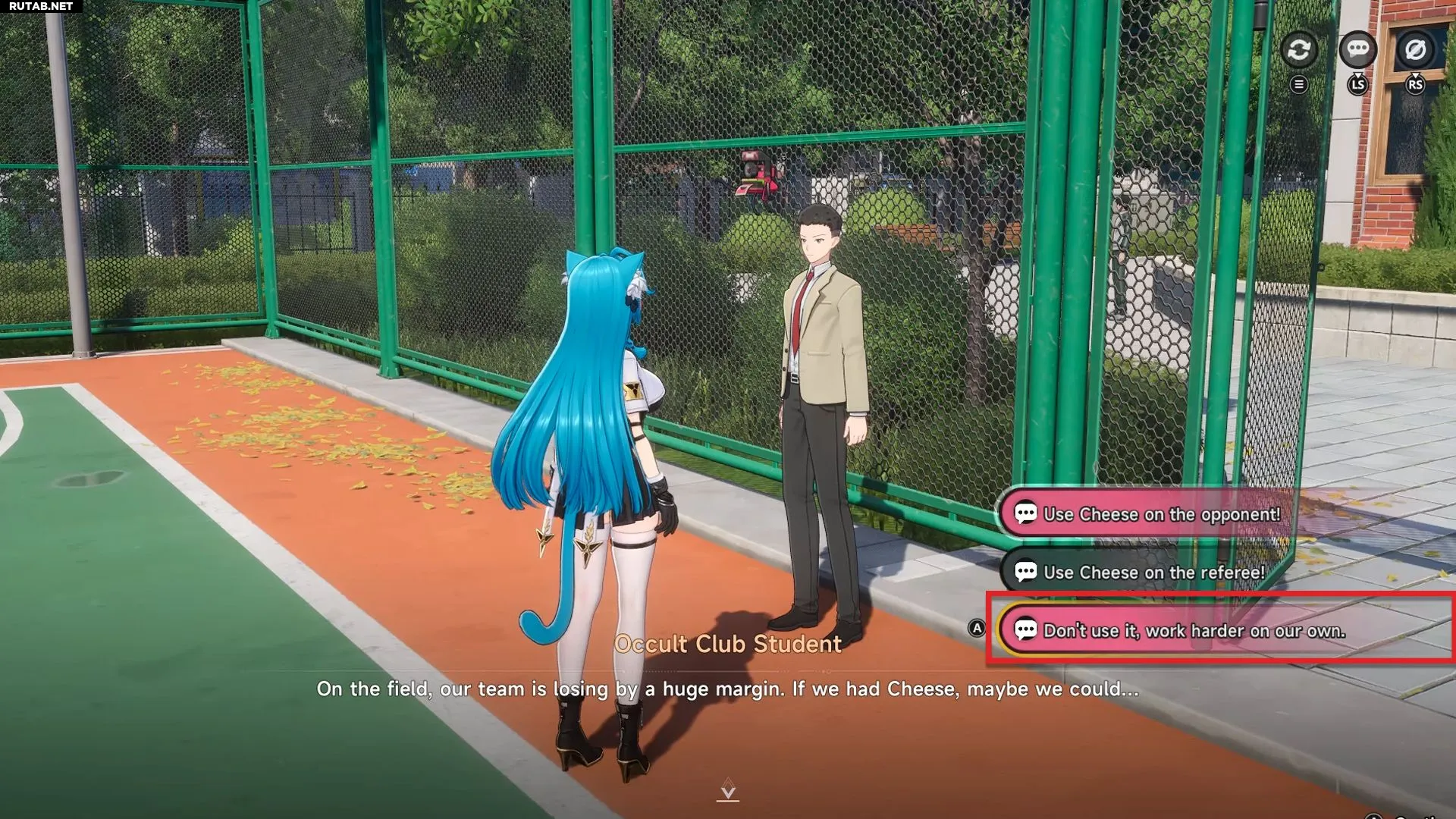Наконец, найдите студента оккультного клуба на баскетбольной площадке. Она расположена к востоку от значка Академии Клемент на карте, перед беговой дорожкой.