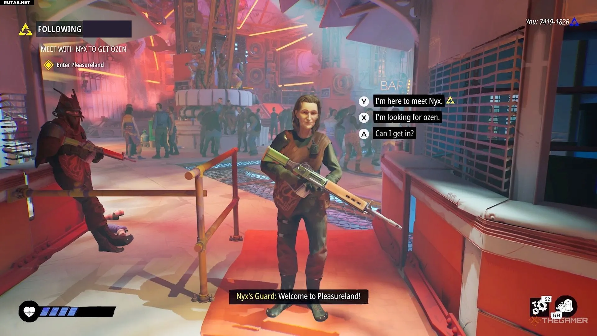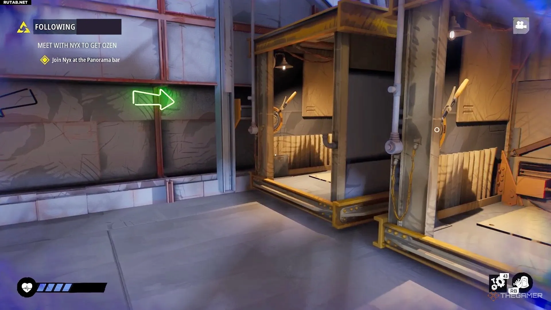 Затем продолжайте двигаться вперед, пока не дойдете до большой вывески Panorama Bar. Обойдите бар сзади, чтобы найти Никс.