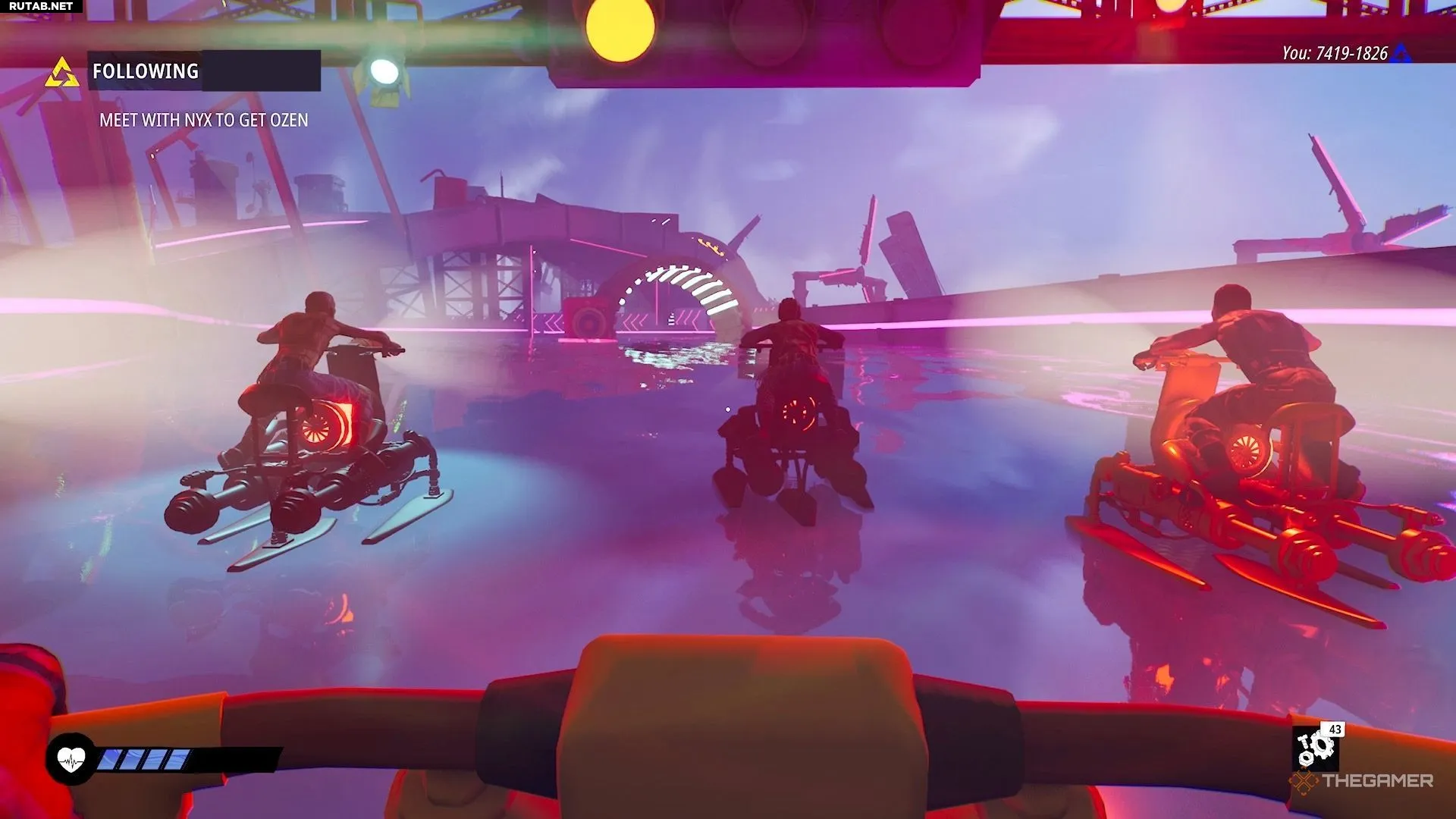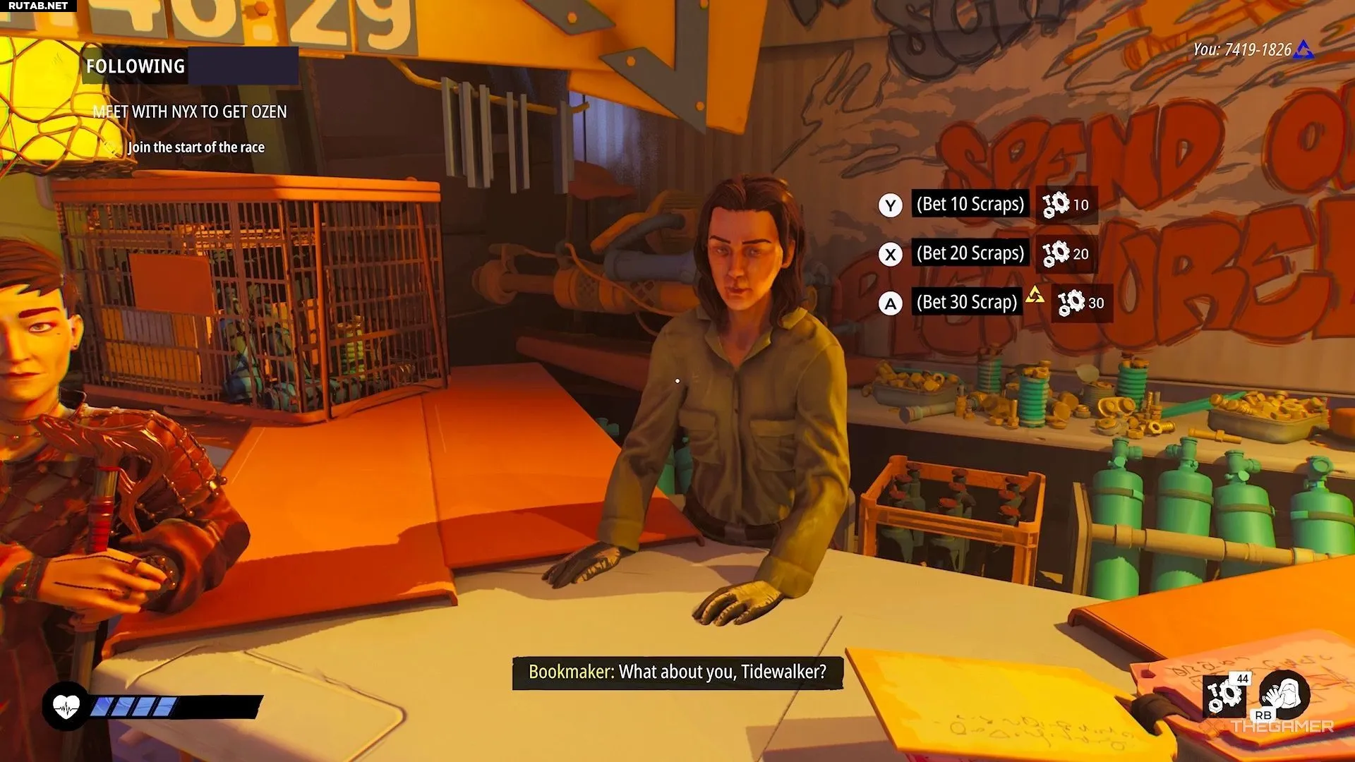 Когда вы подойдете к Никс, начнется разговор на ходу. Во время беседы она уговаривает вас участвовать в гонке и даже заключает с вами пари на то, сможете ли вы побить время предыдущего Ходока по волнам.