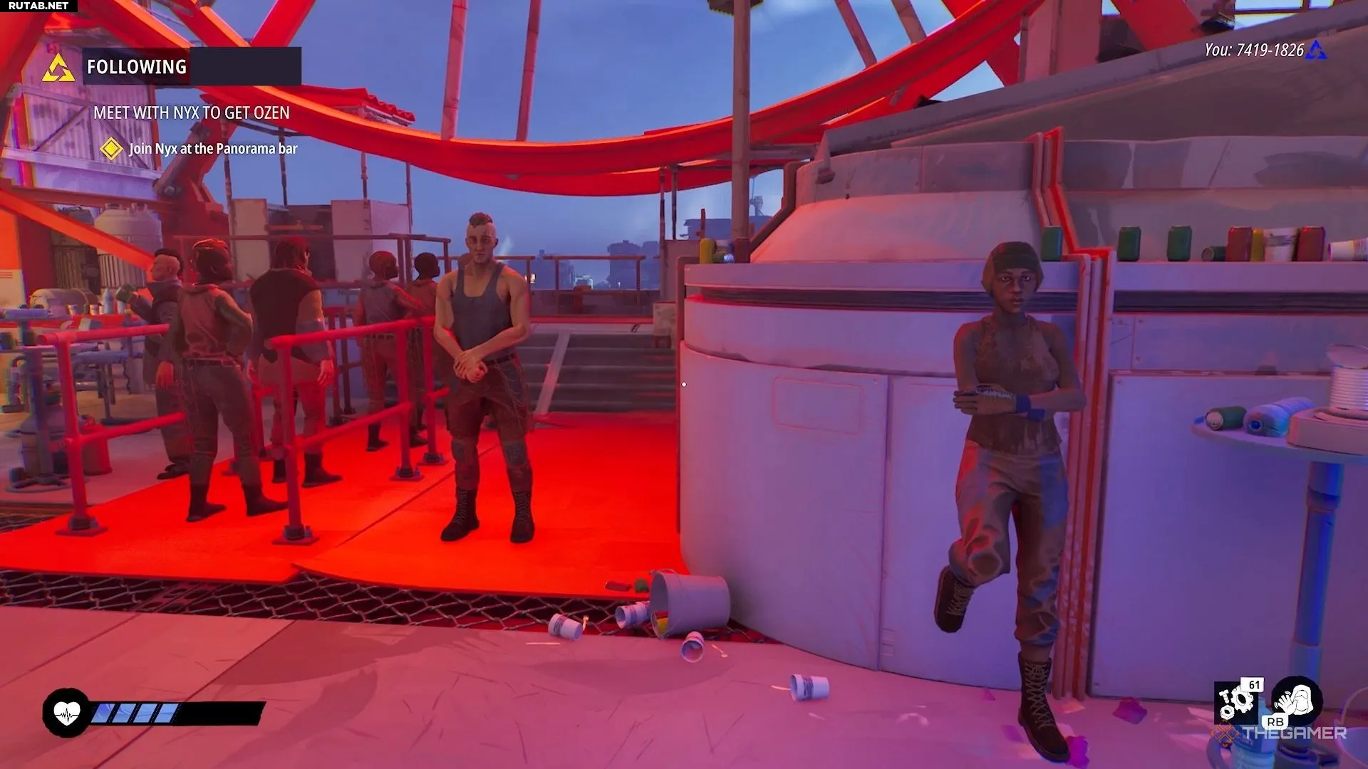 В конце гонки вы поговорите и получите награды. Затем воспользуйтесь одним из лифтов, чтобы вернуться в Panorama Bar, где находится Никс.