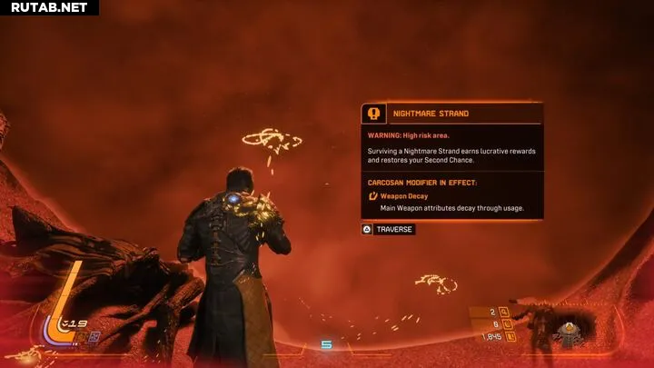 По биомам Каркозы вы найдёте дополнительные врата под названием «Нитевидные кошмары», которые предлагают более сложные сражения. В награду за успешное прохождение ваш «Второй шанс» восстановится. Однако учтите: если вы ещё не использовали свой «Второй шанс», прохождение «Нитевидного кошмара» не даст вам третью жизнь.
