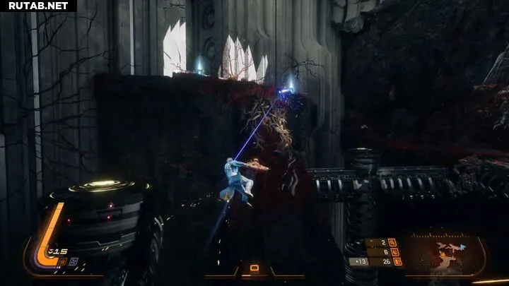 В Saros есть элементы метроидвании: вы будете открывать новые способности передвижения в более поздних биомах. В начале игры вы увидите синие крюки на уступах, которые ведут куда-то, но у вас пока нет нужных инструментов. Позже вы разблокируете крюк-кошку, который позволит добраться до новых областей.