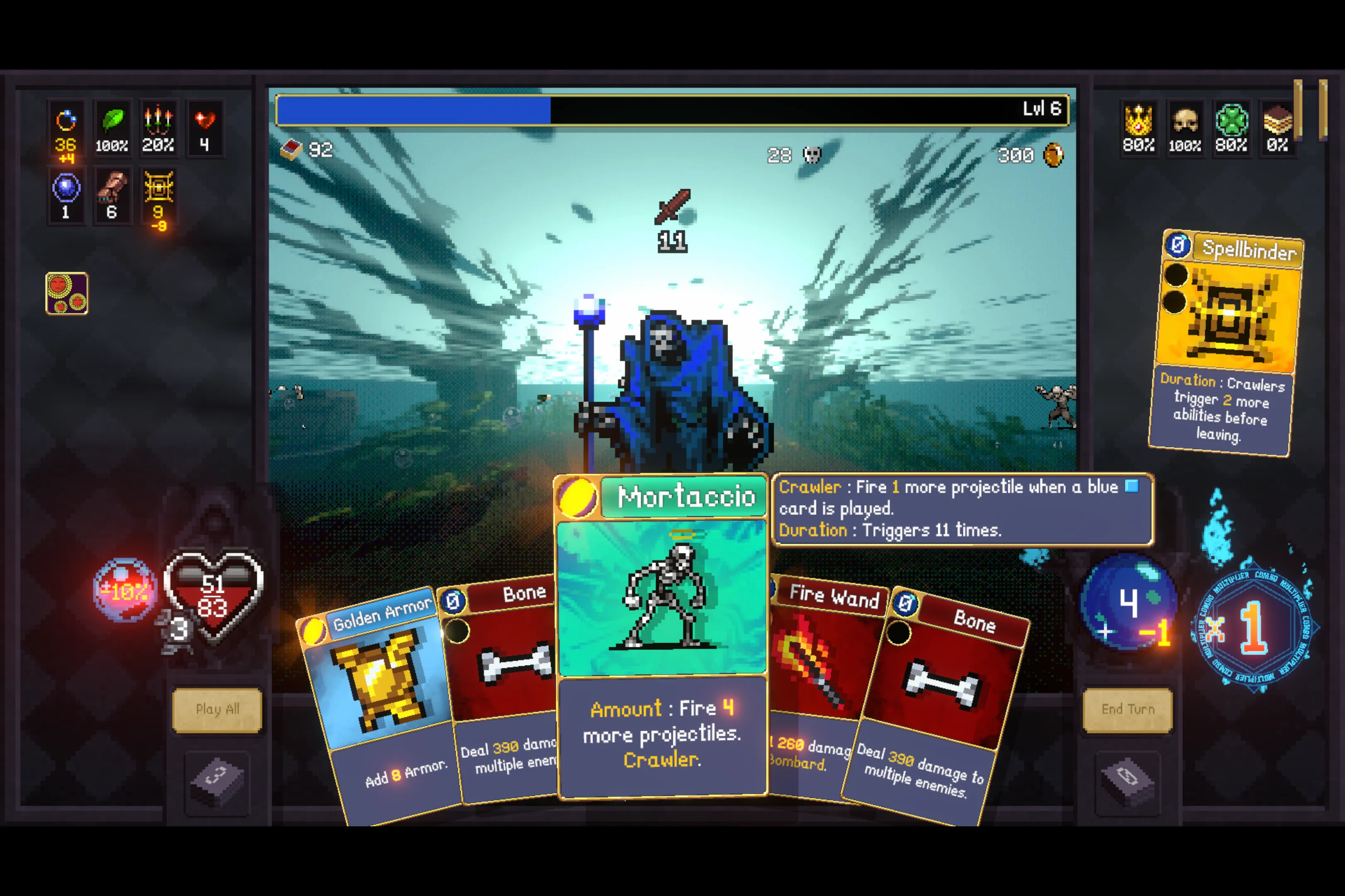 В Vampire Crawlers есть несколько характеристик, и все они одинаково важны. Игроки могут сосредоточиться на улучшении определённых параметров во время забега, чтобы выстроить вокруг них свою стратегию. Однако некоторые характеристики всегда будут полезны независимо от выбранной тактики.