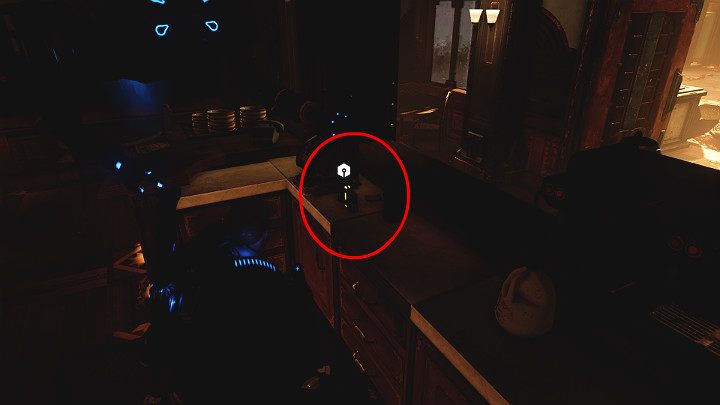 Подберите коллекционные предметы, лежащие на одном из столиков. Зайдите под мебель слева и приготовьтесь к битве.