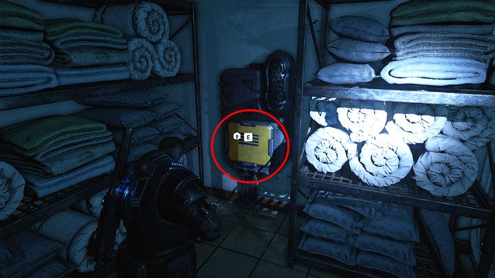 Спуститесь по лестнице и войдите в первое здание слева. Компонент находится в темной комнате. Выйдите из здания и следуйте по дороге. Войдите в здание справа.