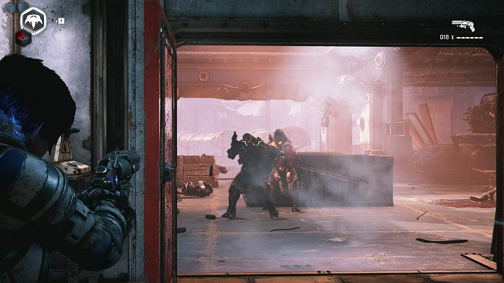 Здесь вы найдете одного тяжело бронированного и вооруженного противника и множество мелких врагов. Убейте все цели и двигайтесь дальше.