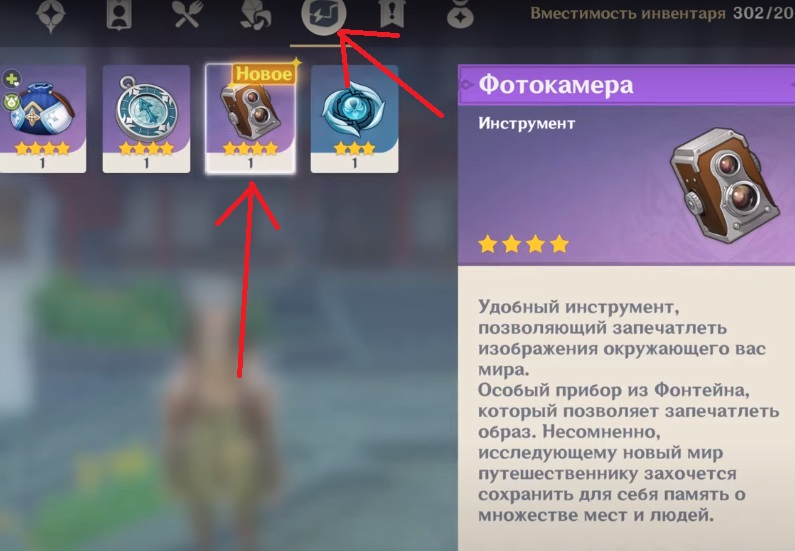 После диалога с чайным доктором спрыгивайте со здания и летите сдавать квест работку торговой гильдии «Фэйюнь». В конечном итоге вы получите камеру в личное пользование. Чтобы её «надеть», нужно зайти в инвентарь в раздел с рюкзаком (инструменты) и надеть камеру. Она у вас высветится справа внизу кнопкой Z. В будущем вы сможете нажимать на Z, чтобы сделать снимок.