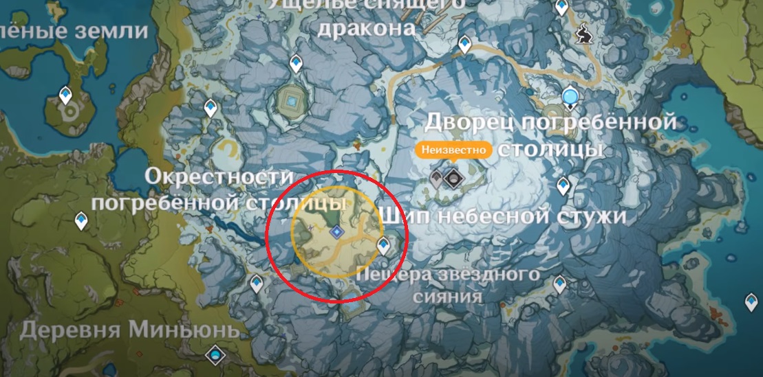 Это желтая область, которая располагается на западе Ущелья спящего дракона: