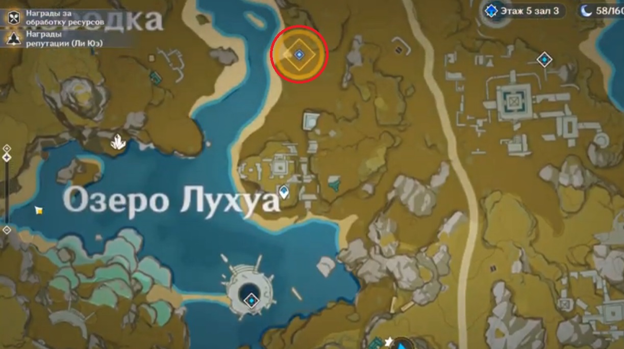 После диалога задание обновится и на карте мира появится желтая область к северу от Озера Лухуа и недалеко от Долины Гуйли. Используйте ближайший телепорт, чтобы быстро добраться до нужной точки.