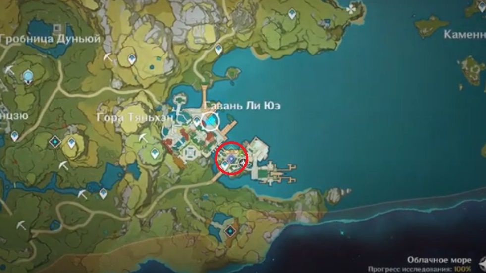 Во время диалога с Крослем торговец попросит юристку оценить стоимость изумрудного нефрита. Девушка пригласит Чжи Цяо отойти в сторонку, следуйте за синим маркером. Удобное для переговоров место вы найдете в Ли Юэ, здесь: