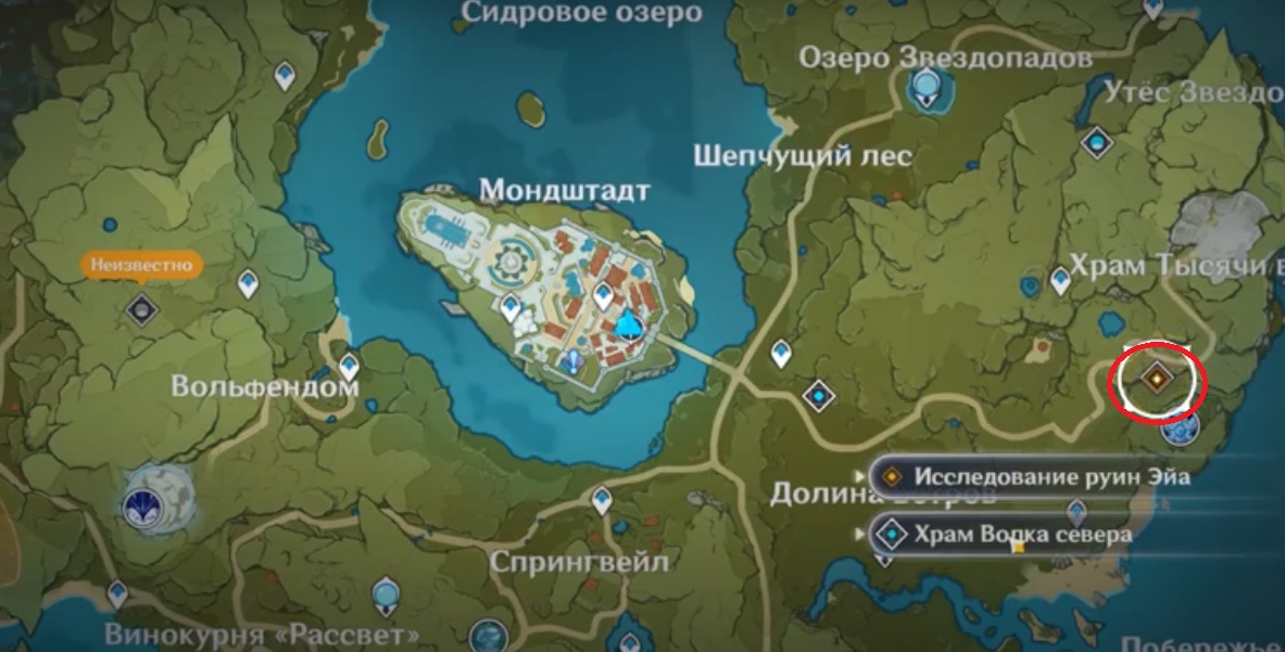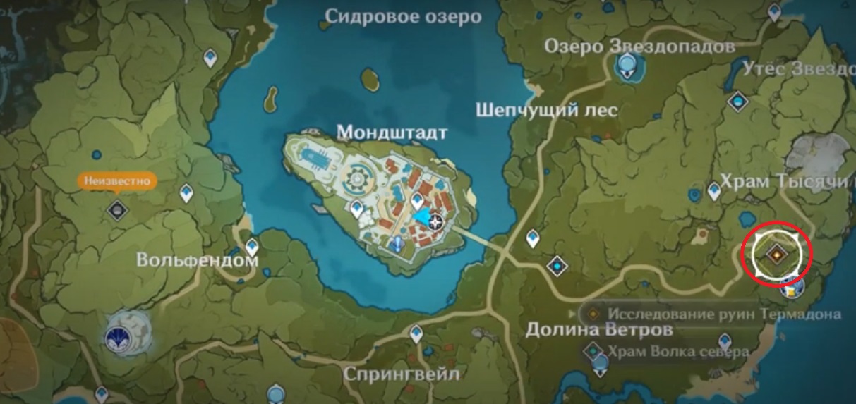 Когда блюдо будет готово, Беннет предложит его вам. Спросите: съедобно ли оно? В итоге вы получите фиолетовую жижу, которая называется «несчастное блюдо». Когда подготовка будет завершена, отправляйтесь в руины Термадона. Они находятся здесь:
