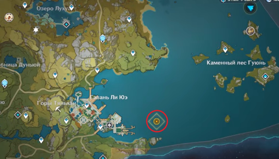 Покиньте руины и вернитесь в лес Гуюнь. Это будет короткая миссия, где вы сбросите в море артефакты богини Соли и посморите финальные ролики с участием Чжун Ли. Вам сюда:
