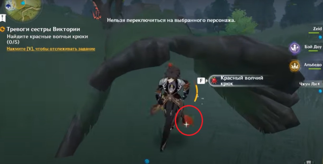 В такой развязке вам придется самостоятельно искать красные волчьи крюки, когда Барбара попросит вас помочь ей. Кстати, красный волчий крюк выглядит, как красная ягода. Вам нужно 5 штук: