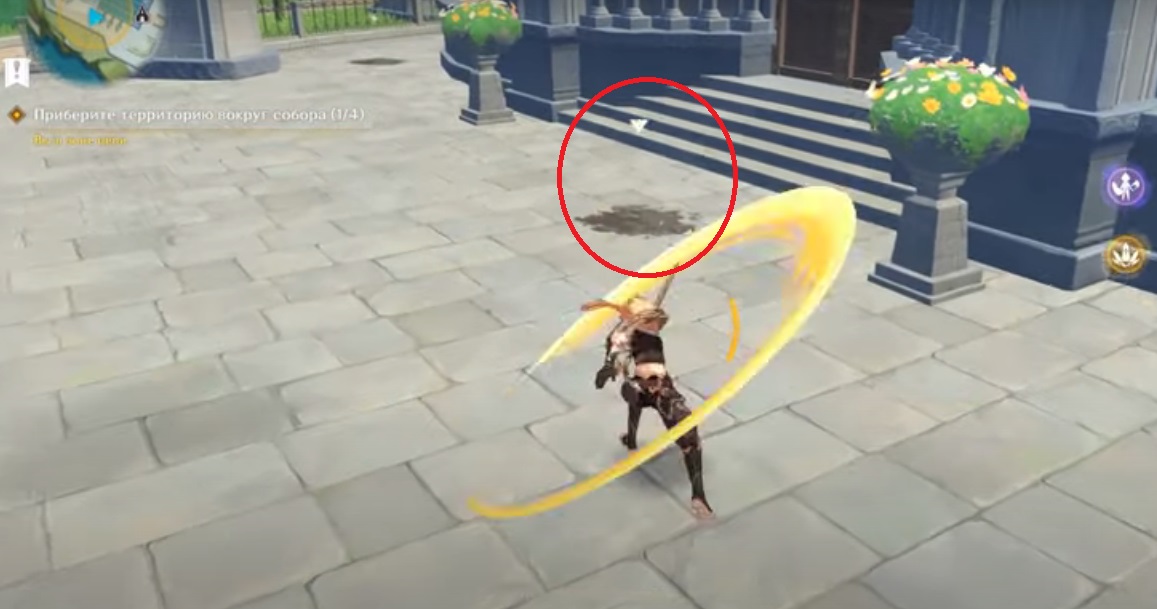 Когда вы вернетесь, Виктория попросит вас выполнить обязанности Барбары, пока её нет. А именно – нужно будет прибраться на территории церкви при помощи стихии анемо. Для этого подойдет ваш основной герой, Сахароза, Джинн или любой другой персонаж с анемо способностью.