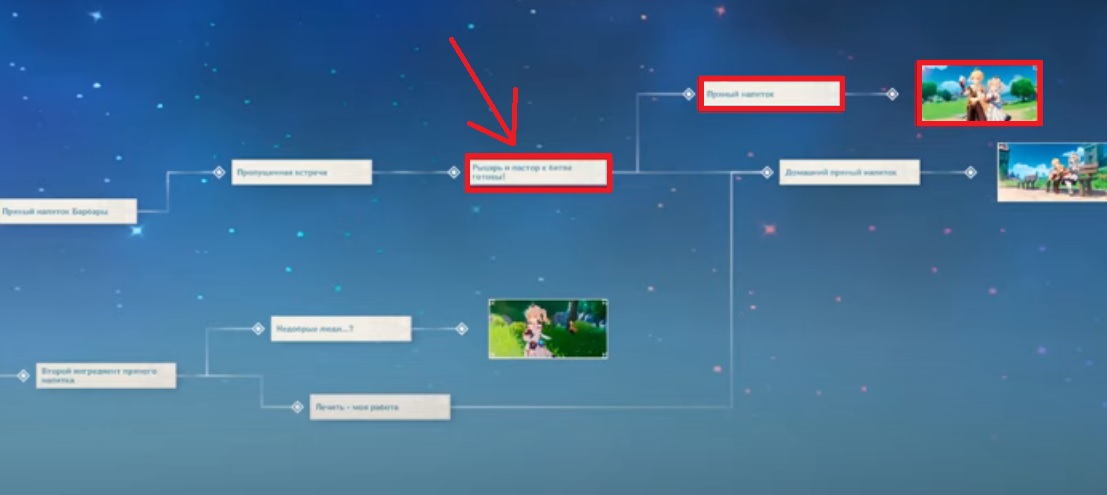Теперь ваша задача просто выбрать уже готовый горячительный напиток из Ли Юэ. Барбара не обидится (но расстроится, однако вам хватит сердечек, чтобы это пережить), ей будет интересно попробовать особую кухню Ли Юэ. На данном шаге вы отроете новую концовку.