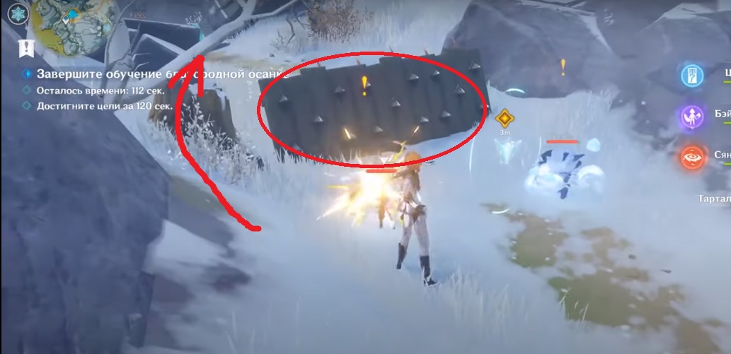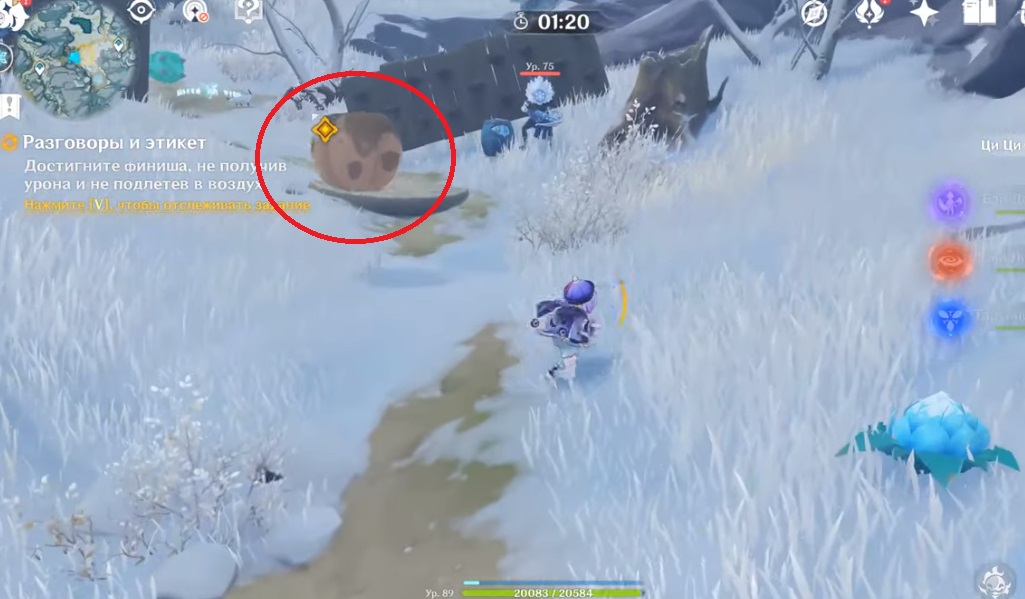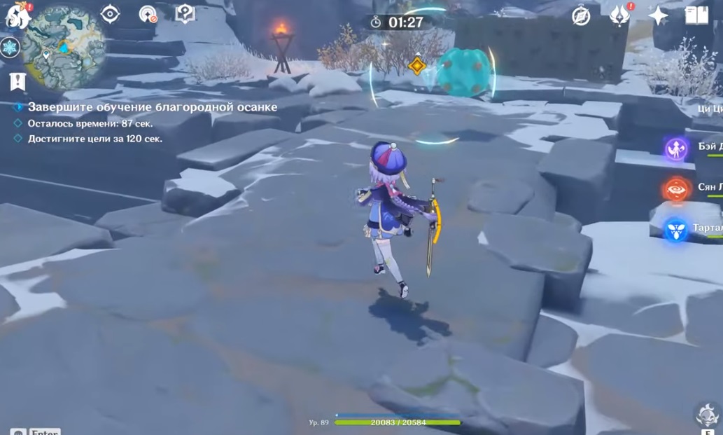 Теперь ваша задача не получить крио-стан и не подлететь в воздух. Вы встретитесь лицом к лицу с крупными крио слаймами, которые свалят вас с ног, если ударят с воздуха. Также рядом будут ползать гидро слаймы, поэтому ваш единственный шанс при низком уроне – это щиты. Например, щит Чжун Ли. Если же вам хватает урона – вы справитесь и без щитов, просто контролируйте ситуацию на поле боя и старайтесь бить всех одновременно. А тех, кто стоит дальше от вас, атакуйте позже, также пачкой.