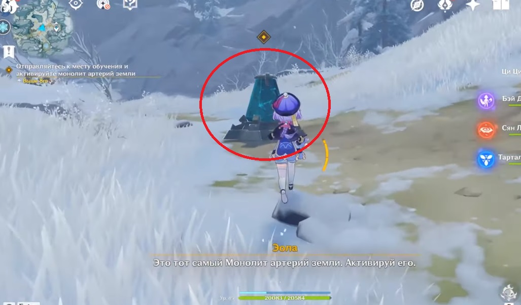 После преодоления полосы препятствий, поговорите с Эолой. Вы узнаете, что это были только цветочки. Впереди вас ждет Монолит артерий земли, который притягивает монстров. Вот он, активируйте его на F: