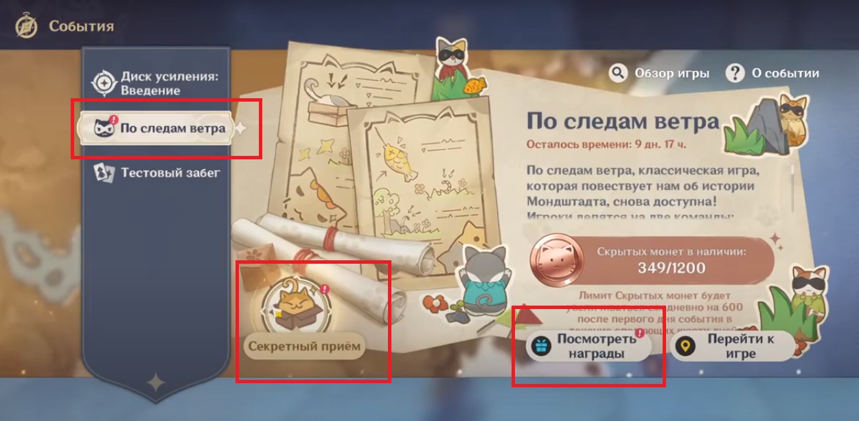 Если вы соответствуете требованиям ивента, зайдите в раздел событий в меню и найдите раздел «По следам ветра». После чего нажмите «перейти к игре»: