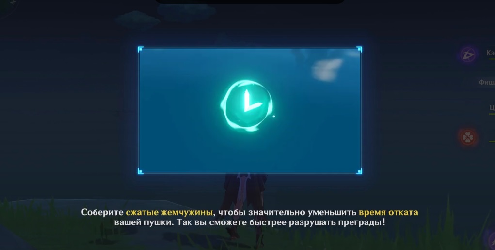 Как уже говорилось ранее, вы будете плавать на волноходе, у которого имеется два типа атаки: легкая пушка и мощная пушка. Легкая отличается скорострельностью, имеет откат всего 0,1 секунды и может со средней скоростью разбивать только легкие сооружения хиличуров, выглядят они вот так: