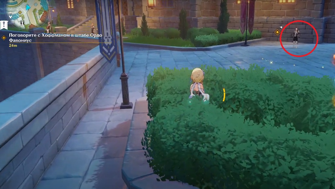 Пока вы болтаете, прибудут хиличурлы, вам с ними необходимо расправиться в одиночку. Это будет очень легко. Следующая цель – общение с Хоффманом. Нужно придумать для него отговорку что тут происходит. Но все пойдет не совсем удачно, в итоге вас пригласят на беседу в штаб ордена.