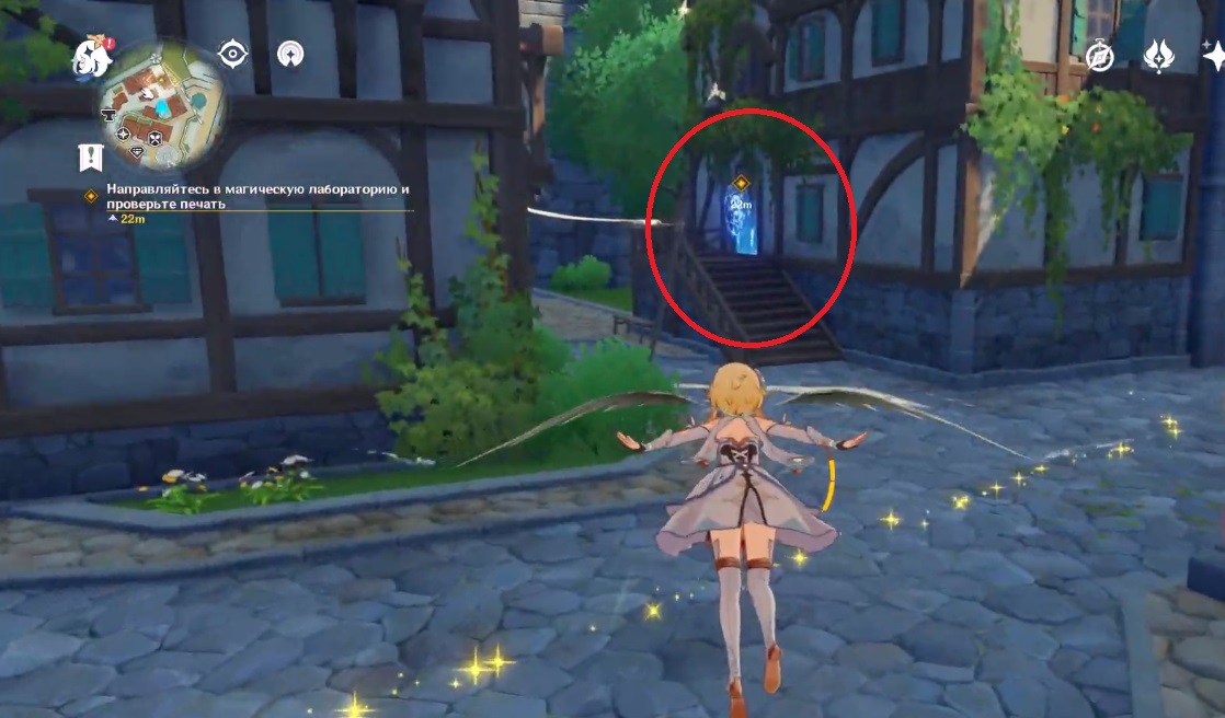 Теперь нужно переместиться ближе к мосту Мондштадта. Вот сюда: