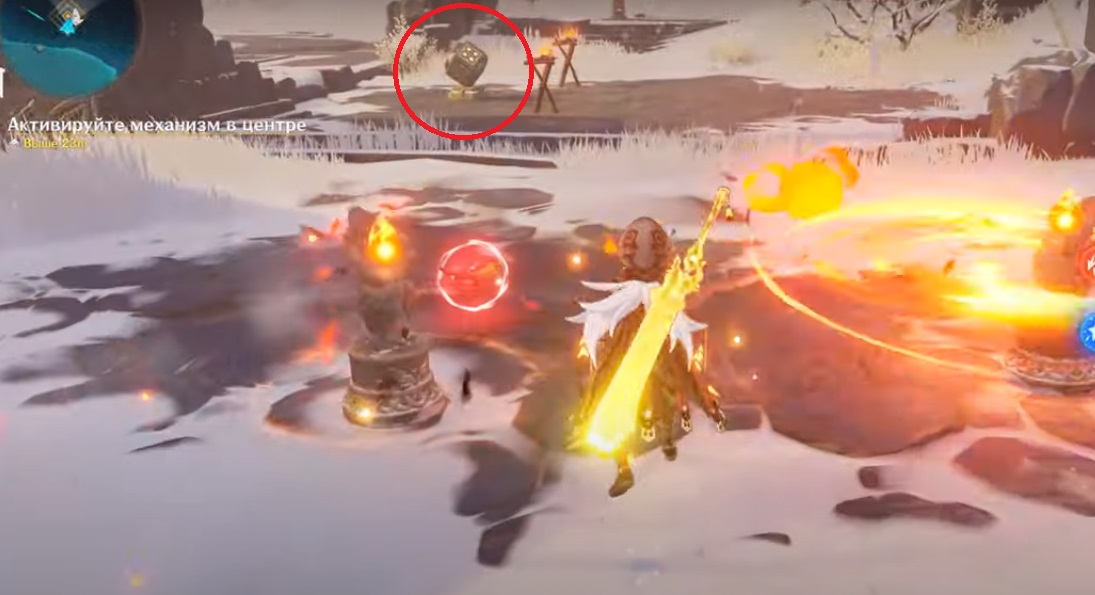 Бегите на желтую метку или используйте телепорты для быстрого перемещения, если они у вас активированы или если локация разблокирована. На месте вас встретит Альбедо, он сообщит о двух испытаниях, которые нужно решить любым удобным для вас способом. Обе головоломки будут содержать в себе огненных фей.