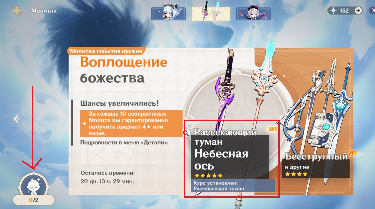 Обратите внимание, что сейчас данное оружие выбивается довольно удобно, если у вас хватает примогемов. Во время баннера с Аякой действует баннер на оружие с небольшой особенностью, которая отображается слева снизу: