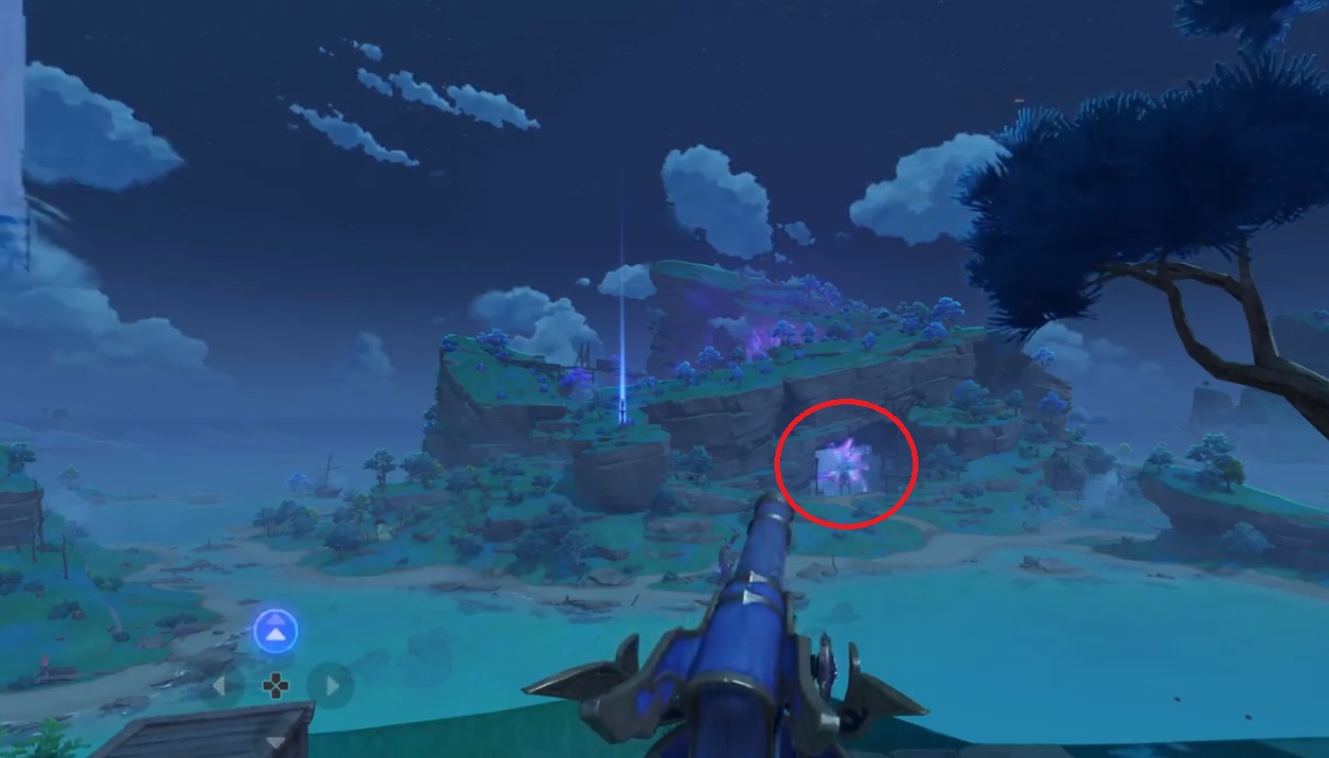 Вторая точка не предполагает наличия фатуи, но вы увидите светящуюся электро фею. С ней все как обычно – вам нужно посадить её на ветку громовой сакуры. Прежде, чем летать за ней, призовите гаргантум, чтобы при необходимости пройти сквозь барьер.