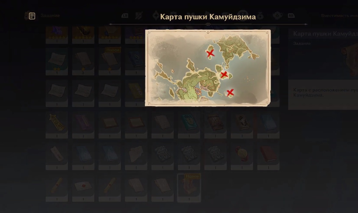 Теперь Ксавье отметил на отдельной карте местоположение каждой пушки, их всего 3. Зайдите в инвентарь в раздел квестовых предметов, нужная вам карта будет лежать в самом низу, изучите её:
