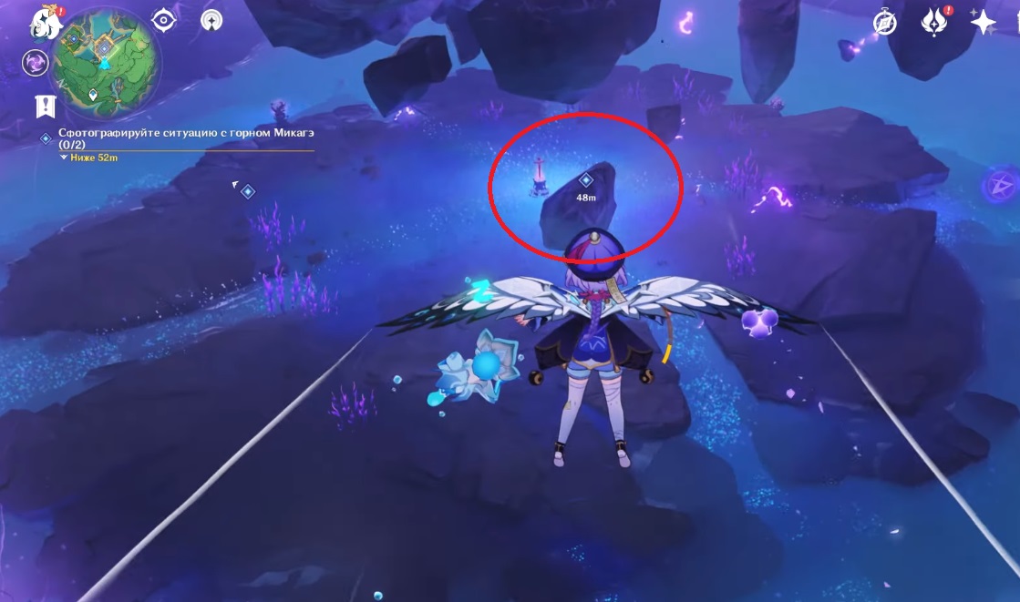 В очередной раз инженер попросит вас о помощи, нужно сбегать к горну Микагэ и записать некоторые данные. Для записи вы будете использовать камеру, которую можно найти в разделе меню Паймон или в инвентаре (на ваше усмотрение, можно надеть и прожимать Z).
