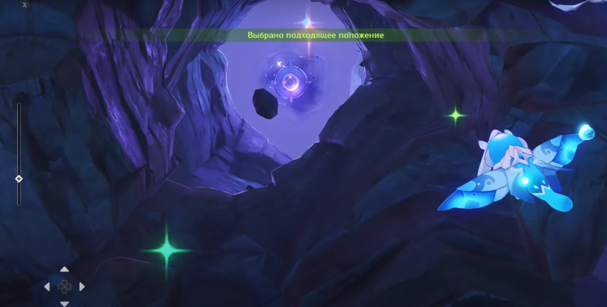 Чтобы снимок сработал и пошел в зачет, вам нужно сфотографировать не просторы как попало, а ядро среди скал в кольце. Для этого поднимите камеру вверх, у вас должен открыться вот такой вид, после чего нажмите на съемку. Обратите внимание на подпись "Выбрано подходящее положение". В будущем, если у вас возникнут сложности с ориентировкой пейзажа, смотрите на надпись. Когда она появляется, можно делать снимок. Она означает, что камера настроена верно :