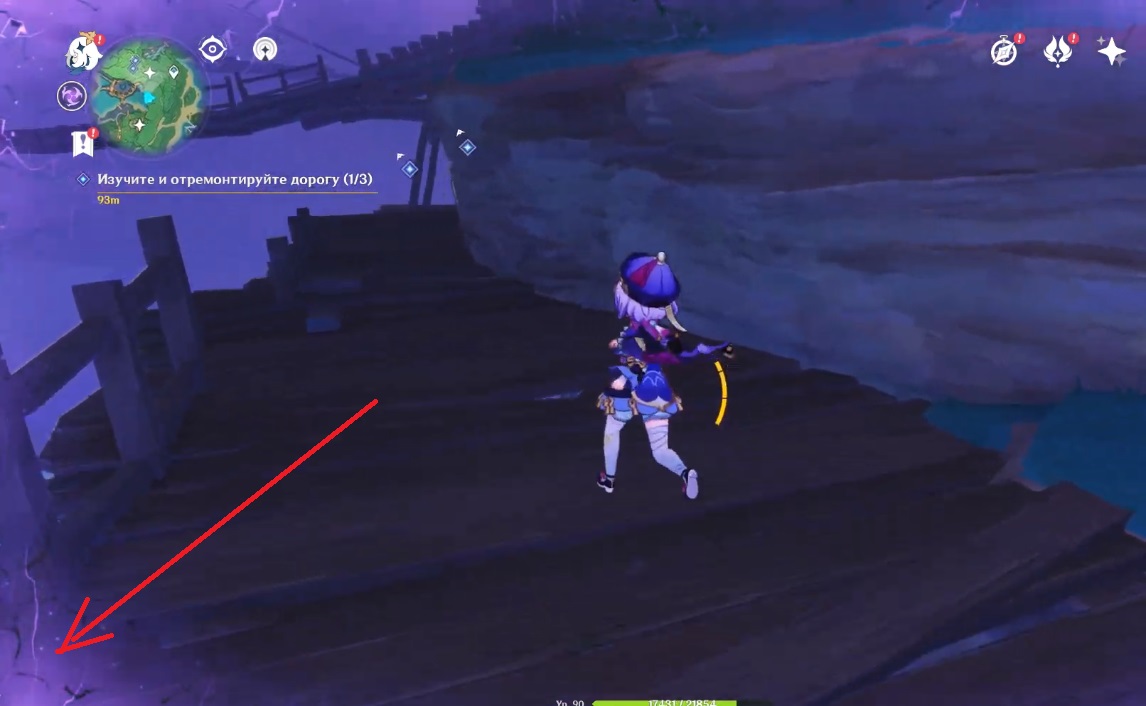 Когда все доски собраны, у вас появляется ещё три метки с дорогой, которую необходимо изучить и отремонтировать. Первая метка находится совсем рядом с респауном квестовых досок. Вам будет достаточно просто пробежать немного вперед и спрыгнуть вниз к мосту: