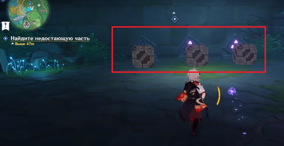 Рядом вы встретите фатуи-врагов, будет очень удобно, если изначально вы разделаетесь с ними и только потом приступите к оберегу (и сундуку, он стоит как раз рядом с оберегом).