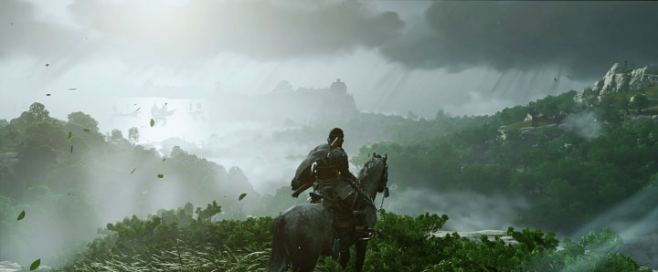 Вам не нужно идти пешком по всей карте, потому что вы можете использовать лошадей. Путешествие верхом на лошади позволяет быстрее добраться до нужных мест. Дзин может легко спешиться с лошади, чтобы начать восхождение или сражаться с противниками.