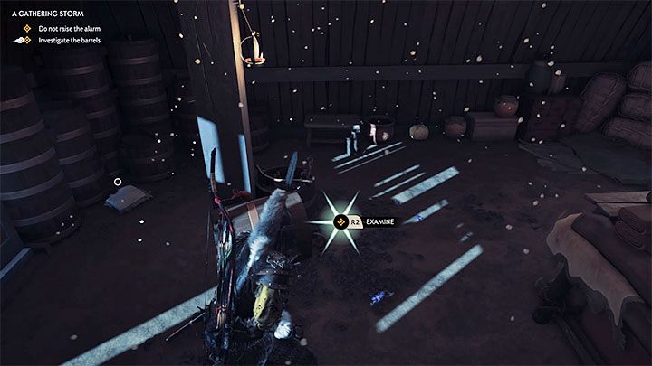 Оставайтесь на первом этаже маяка и взаимодействуйте с бочками - Дзин определит, что в них есть яд.