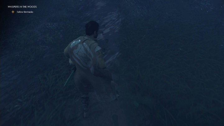 Поговорив с человеком, отправляйтесь в лес. Обратите внимание на костер. Бегите к нему и проверяй треки.