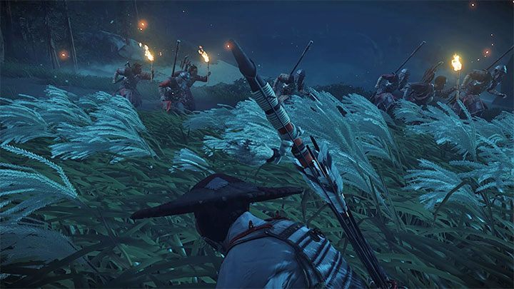 Двигайтесь к месту встречи с Кенджи - вы встретите несколько монгольских патрулей, обыскивающих территорию. Важная информация заключается в том, что вам не нужно сражаться с монголами. Как только вы обнаружите патруль, вы можете быстро спрятаться в траве и ждать, пока не пройдут враги.
