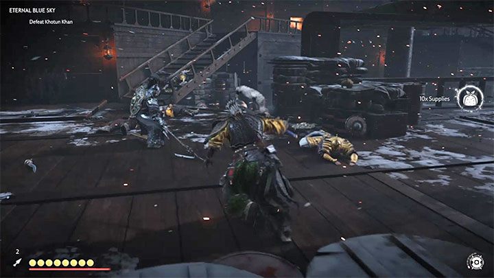 Дуэль с ханом начинается после входа во двор особняка. Это столкновение один на один, поэтому вы можете полностью сосредоточиться на боссе.