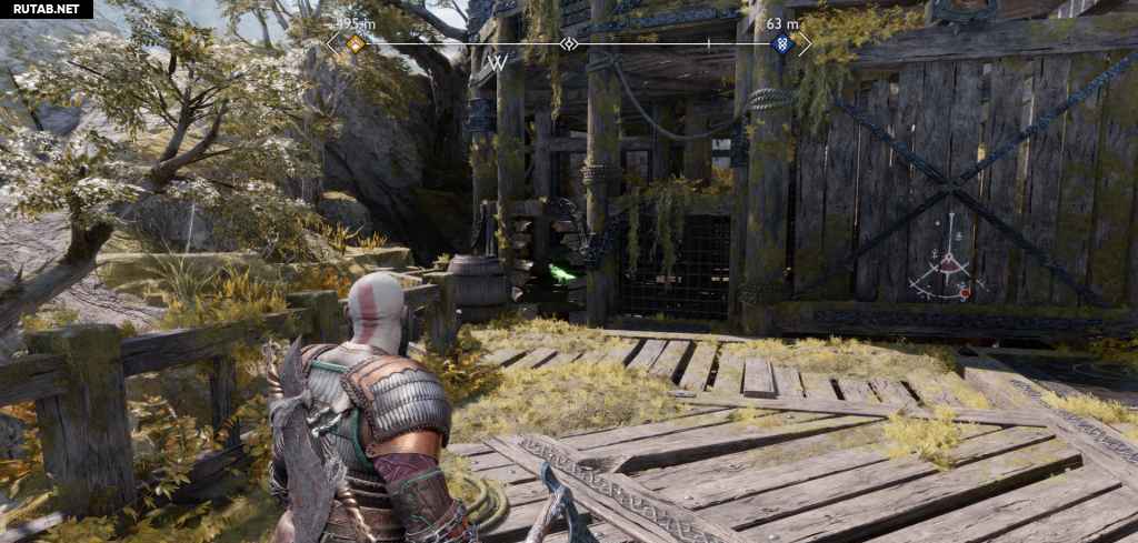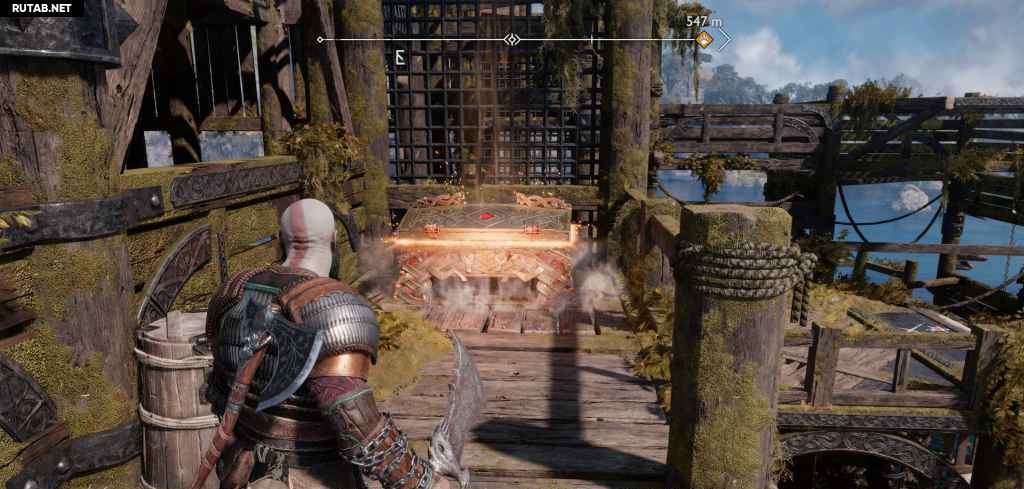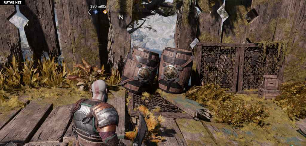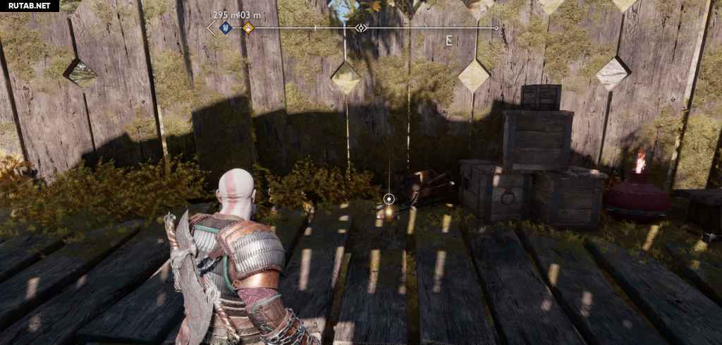 В этом районе вы найдете 3 жаровни, которые вы можете зажечь своими Клинками Хаоса: одну за бочками слева от вас, которую вы можете уничтожить с помощью лука Атрея, одну за забором, который можно зажечь, бросив свой Топор Левиафана в огненный сосуд, и один рядом с сундуком Норн, который они открывают.