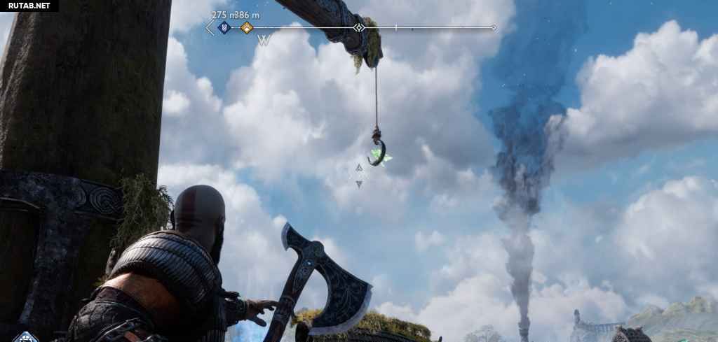 Поднимитесь по цепи и сразу увидите Ворона Одина, которого сможете убить.