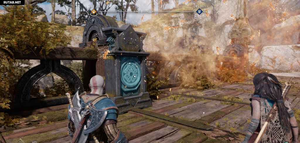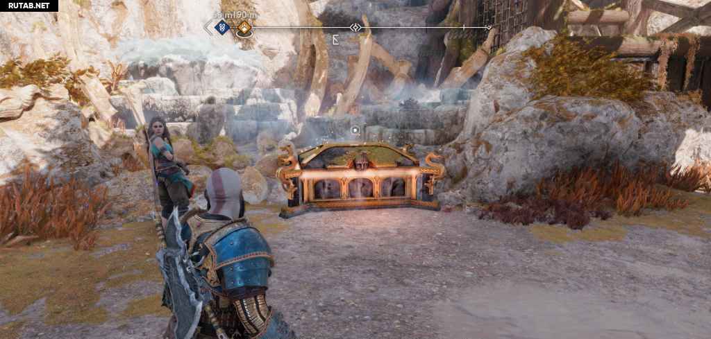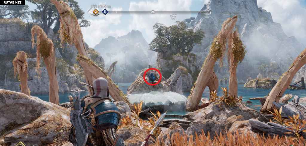 Вокруг пляжа будет 3 гейзера, которые вы можете заморозить, за которыми стоят тотемы, которые можно разрушить, чтобы открыть сундук Норн.